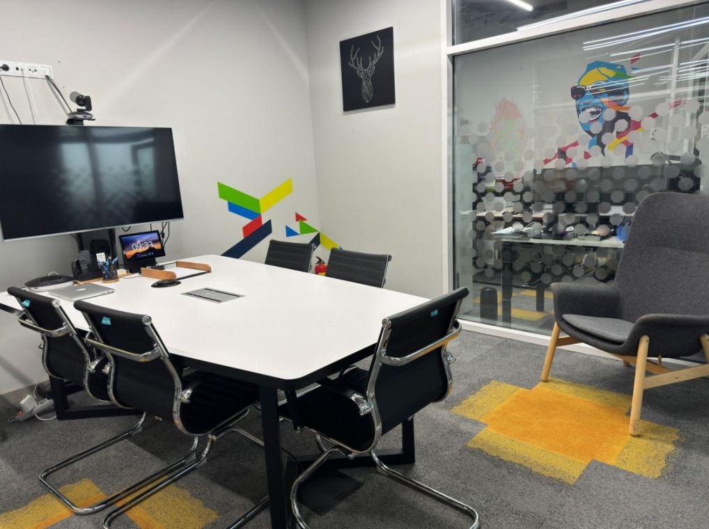 Предлагается офисный блок. Зона ресепшен, серверная, переговорная.