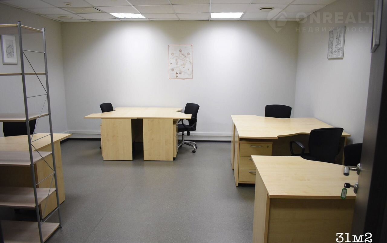 31м2 - 1 кабинет на 7 рабочих мест, с остекление в коридор, с мебелью, 125000р, свободно,