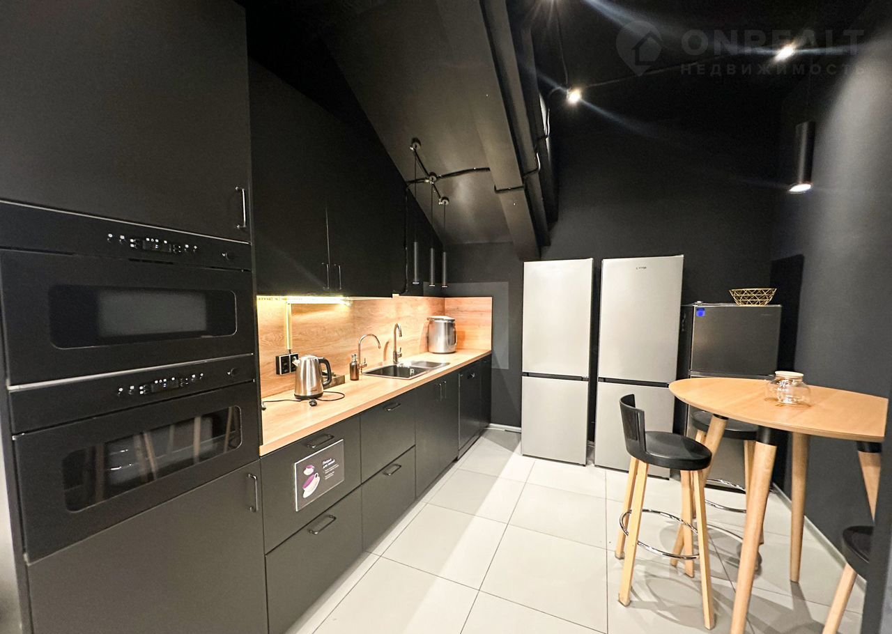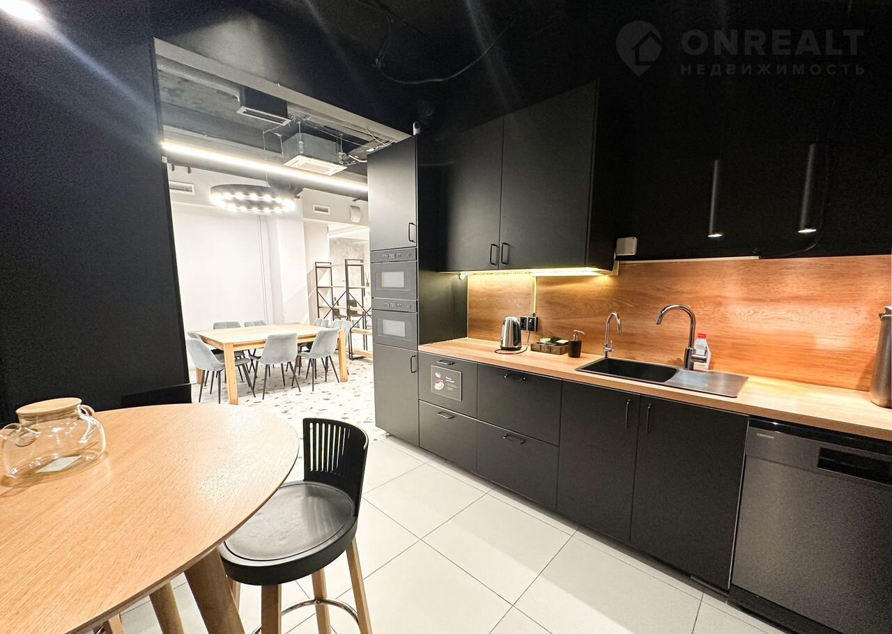 - На первом этаже находится просторная кухня общего пользования и гардеробная для ваших сотрудников.