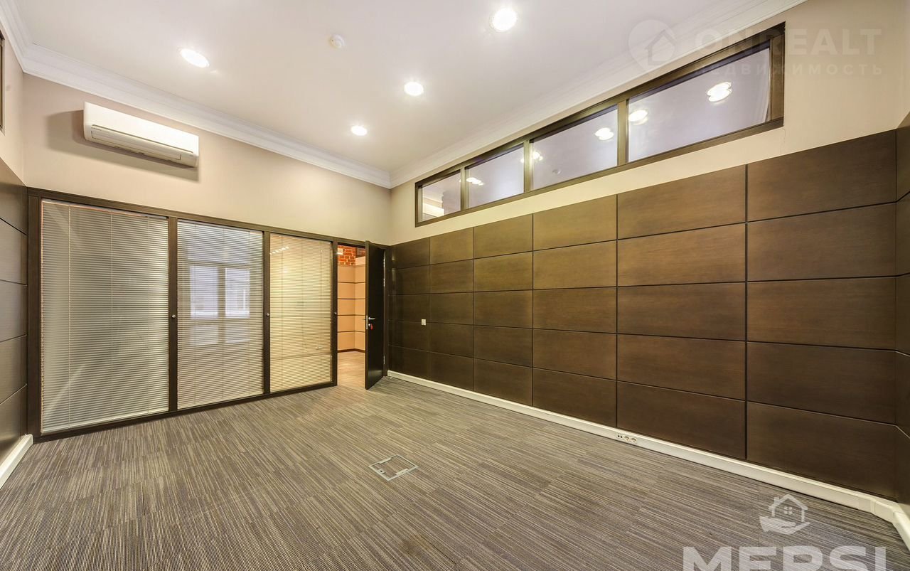 Помещение состоит из 4 кабинетов, зоны ресепшен, оборудованной кухни, серверной и 2 санузлов. В каждом кабинете установлен кондиционер, проведены коммуникационные сети.  Доступ 24/7, система контроля доступа, видеонаблюдение, видеодомофон, пожарная сигнализация, охраняемая наземная парковка, лифт. Выполнена качественная VIР отделка в эксклюзивном стиле ЛОФТ / LОFТ. Ремонт класса Dеluх с использованием высококачественных материалов: кирпичная отделка стен с дизайнерским оформлением из массивов ценных пород дерева, дорогостоящее напольное покрытие из плиточного ковролина. Проведены работы по улучшению шумоизоляции. Респектабельный кабинет руководителя оснащен собственным балконом, большим количеством окон с видом на улицу Забелина.