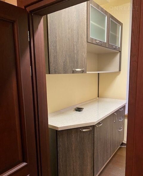 Описание помещения:  Офисное помещение состоит из зоны ресепшн, 3 кабинетов, кухни, сен. узлов.