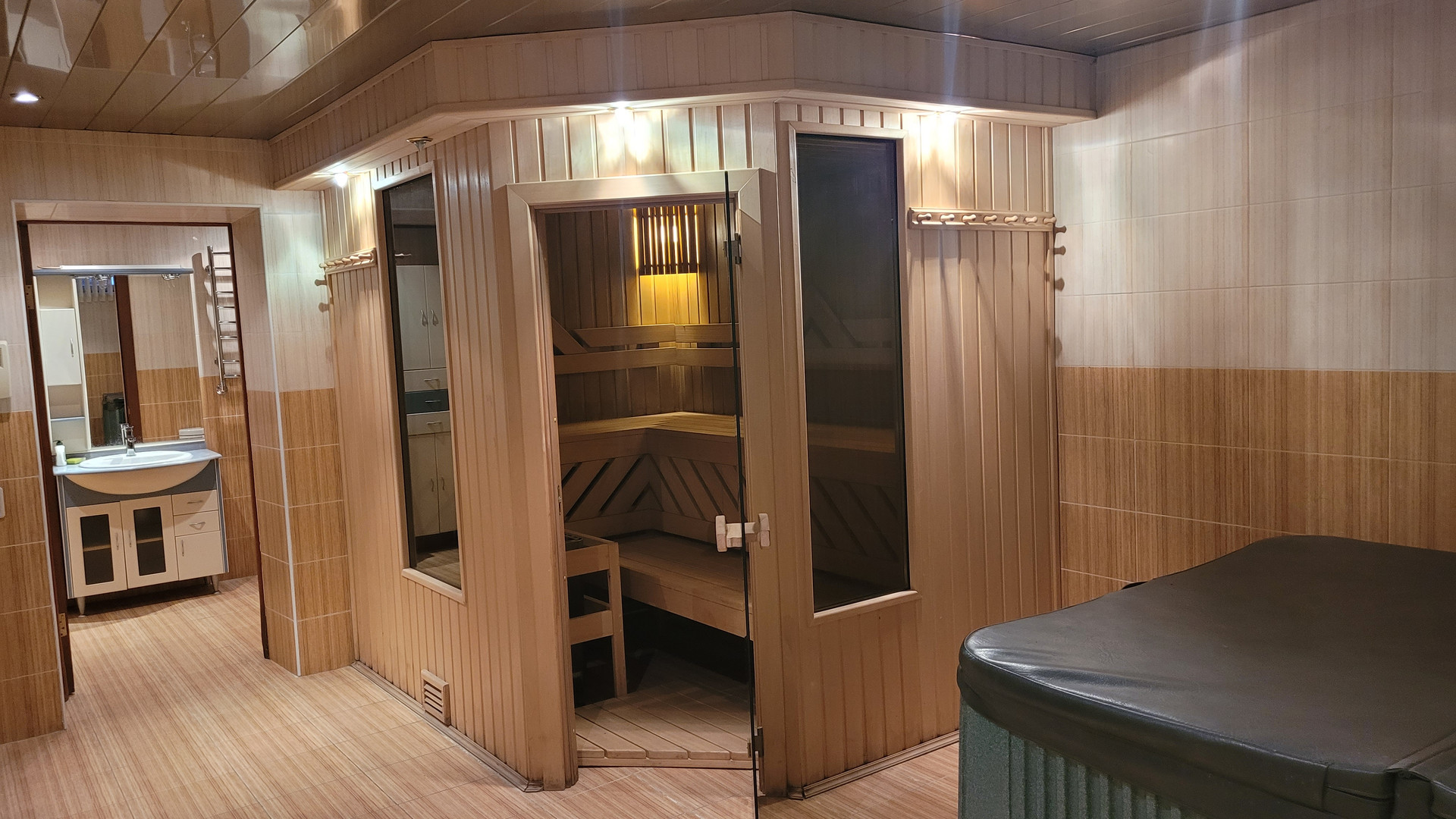 Таунхаус расположен в коттеджном поселке премиум класса, охраняемая территория. На территории пруды с лодками и пляжами, мини стадион, теннисный корт, батуты, многочисленные детские площадки , 2 школы, деткие сады, кружки и много еще чего. Таунхаус расположен в тихом, зеленом уголке, за забором речушка и пролесок. При доме есть участок с зоной барбекю, с деревьями и кустарникам, гараж и стоянка для автомобилей.  В доме 4 санузла, 2джакузи, ванна,  и душевые кабины. На 3ем этаже монсасда с камином на дровах и видеопроэктор с экраном. Домашний кинотеатр+ ТВ. На всех этажах Вай фай с уверенным приемом. 5 спален, в цокольном этаже тренажерный зал,тенисный стол, сауна,СПА,комната отдыха, ТВ. постирочная. В доме большая кухня, полностью оборудованна всем необходимым. Гостинная с болшим столом.