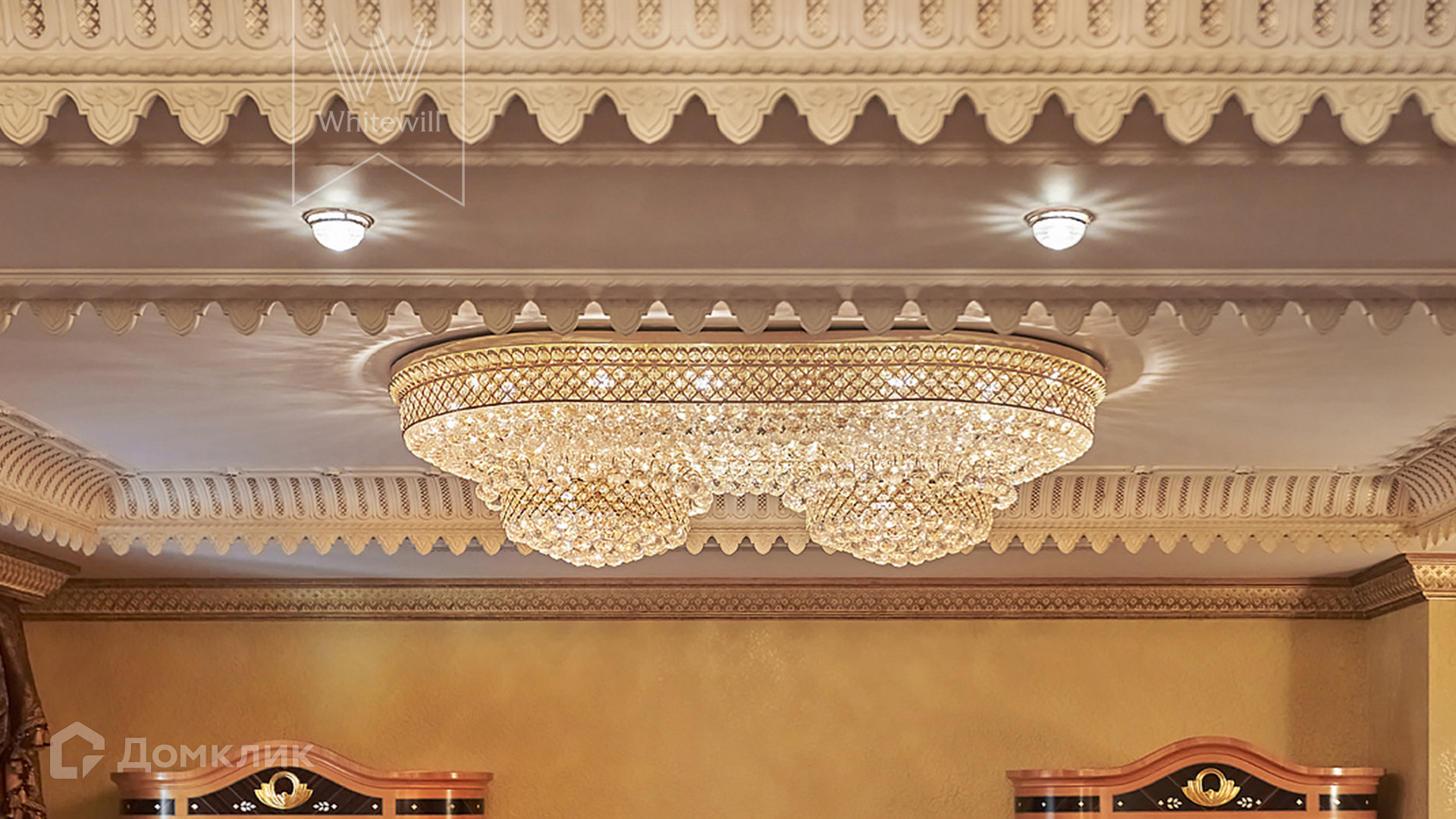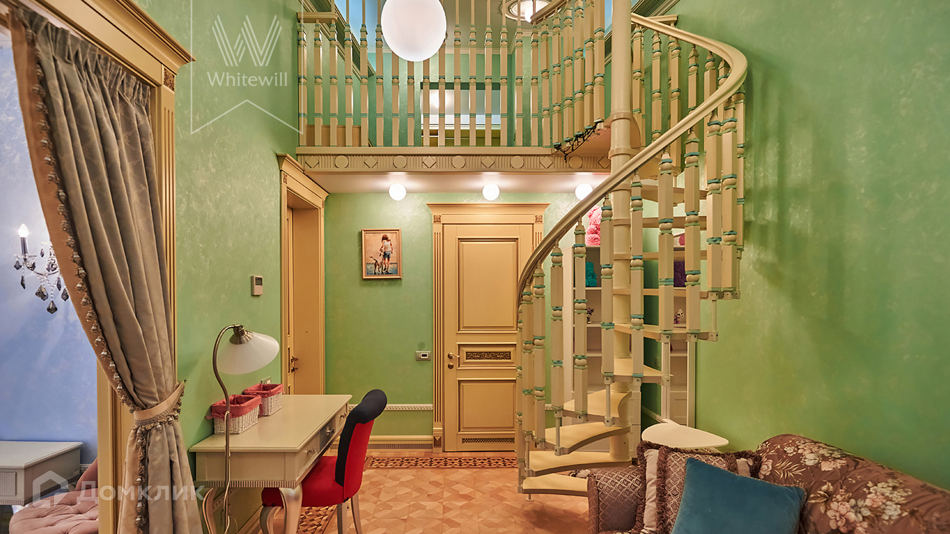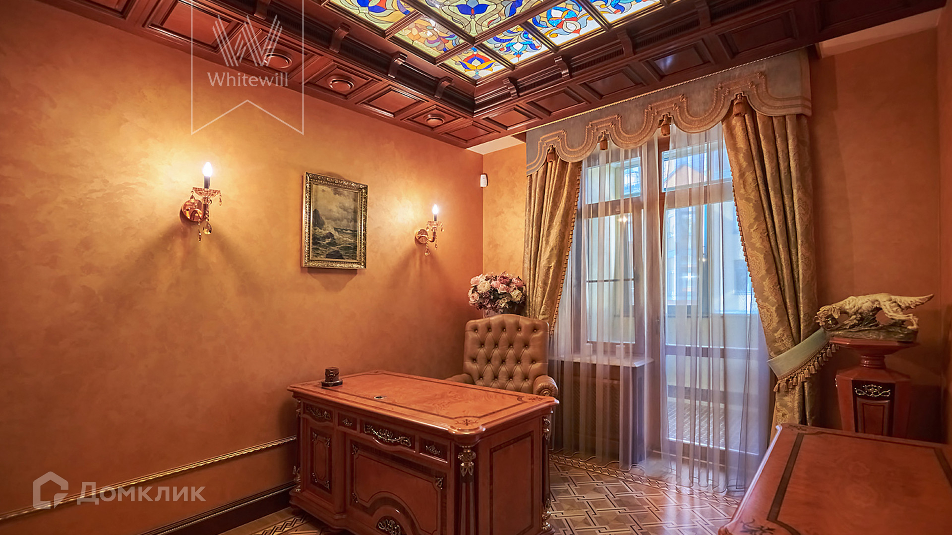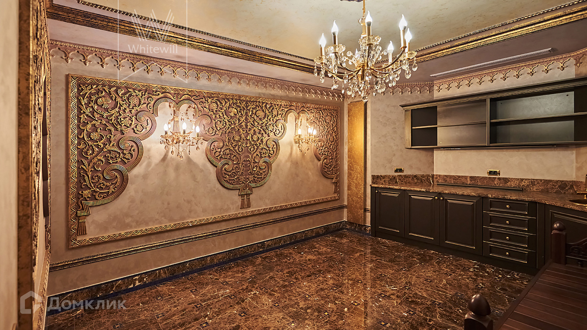 ID 854. С коллегами работаем 50/50. Трёхэтажный таунхаус площадью 323 м² в комплексе премиум-класса «Золотые Ключи-2» рядом с природным парком реки Раменки. Таунхаус включает три этажа, мансарду и подземный этаж. Выполнена премиальная отделка в стиле дворцовой классики. В отделке использованы ценные породы дерева, интерьер украшен лепниной и витражами.