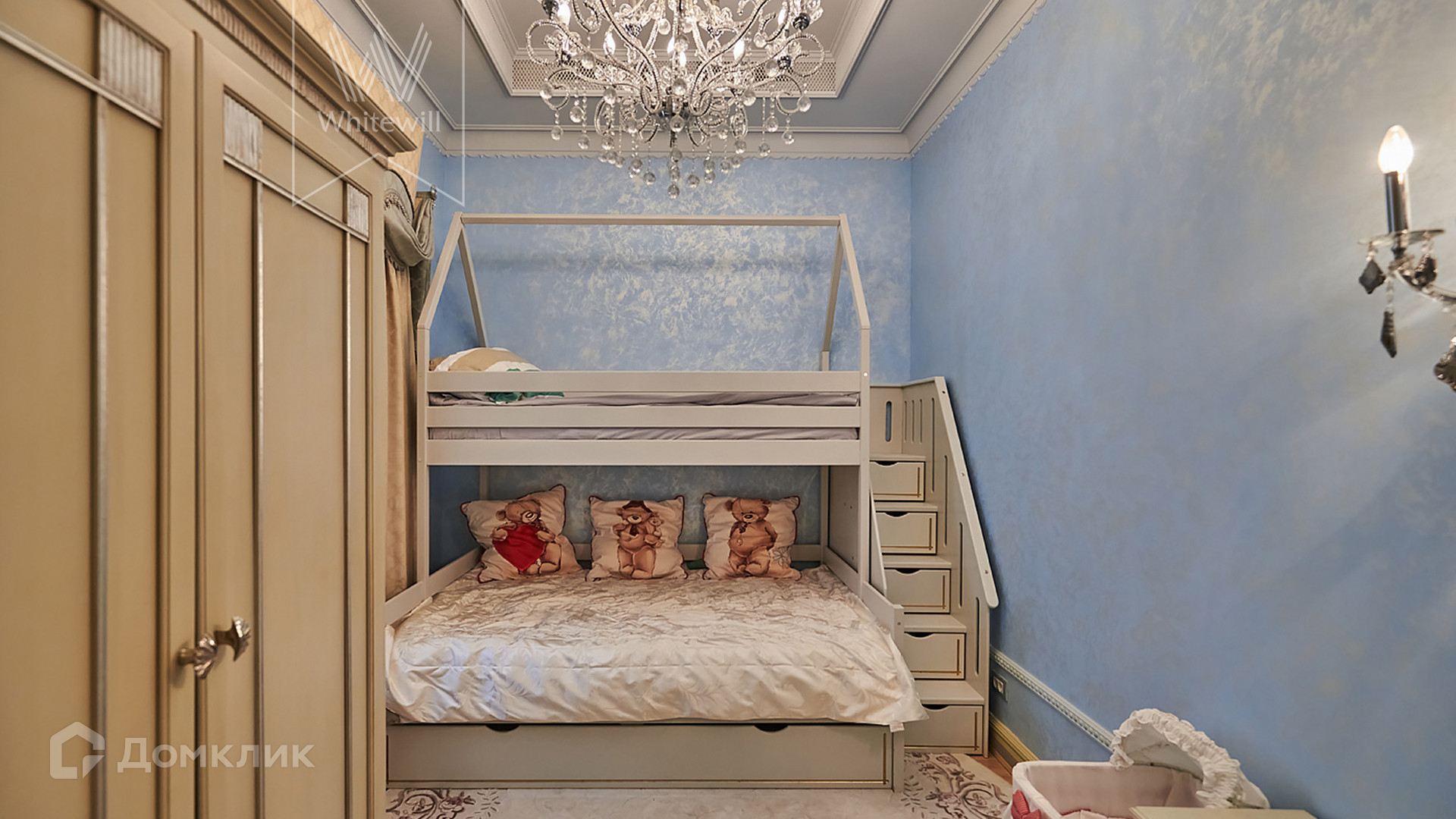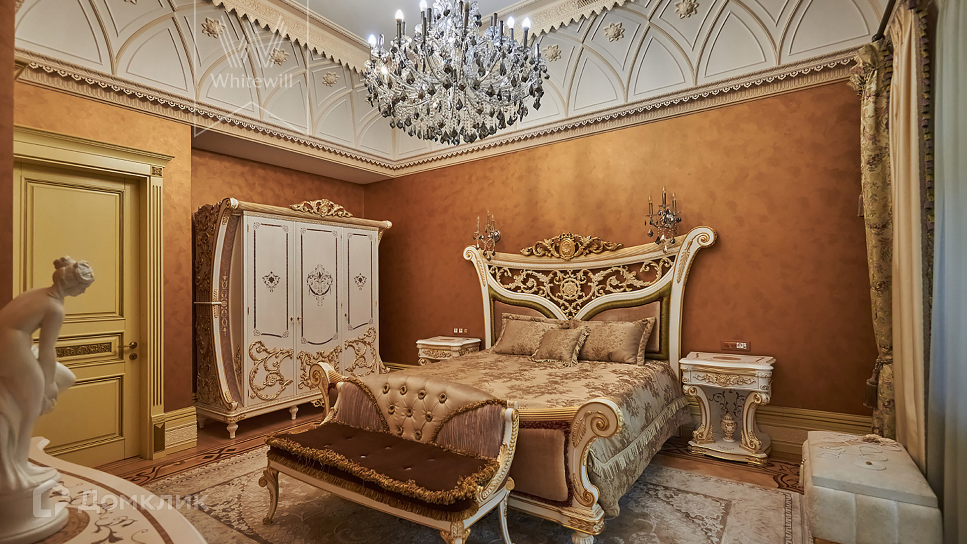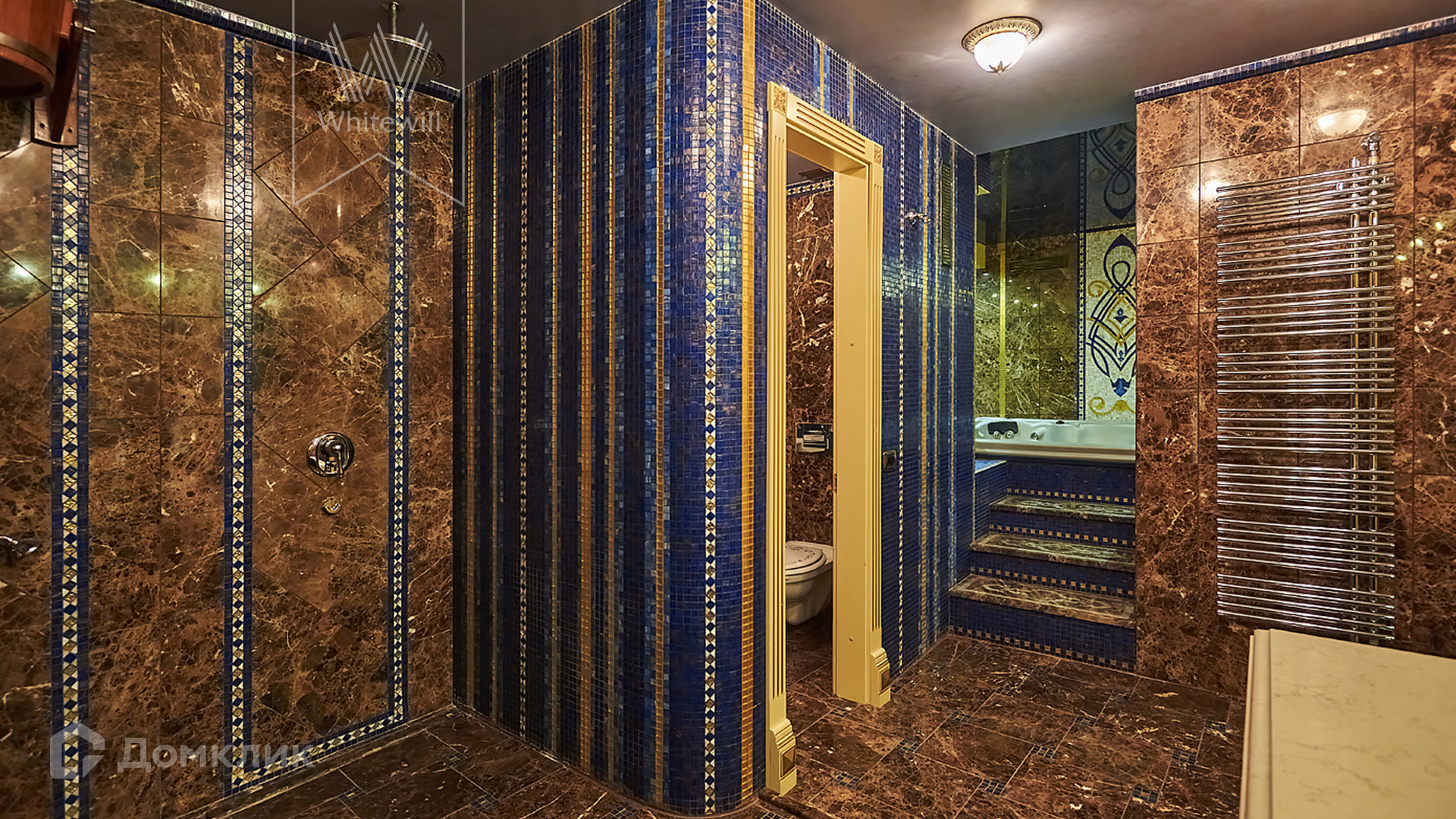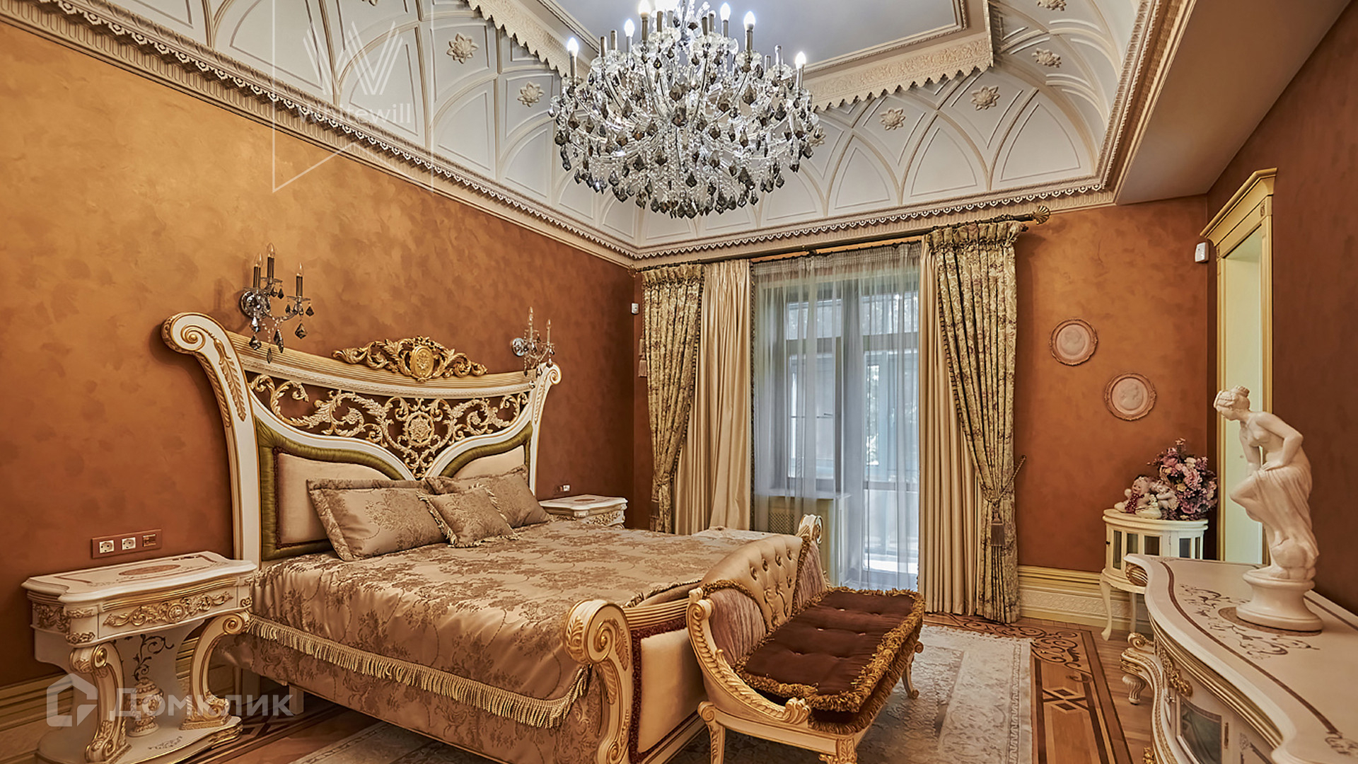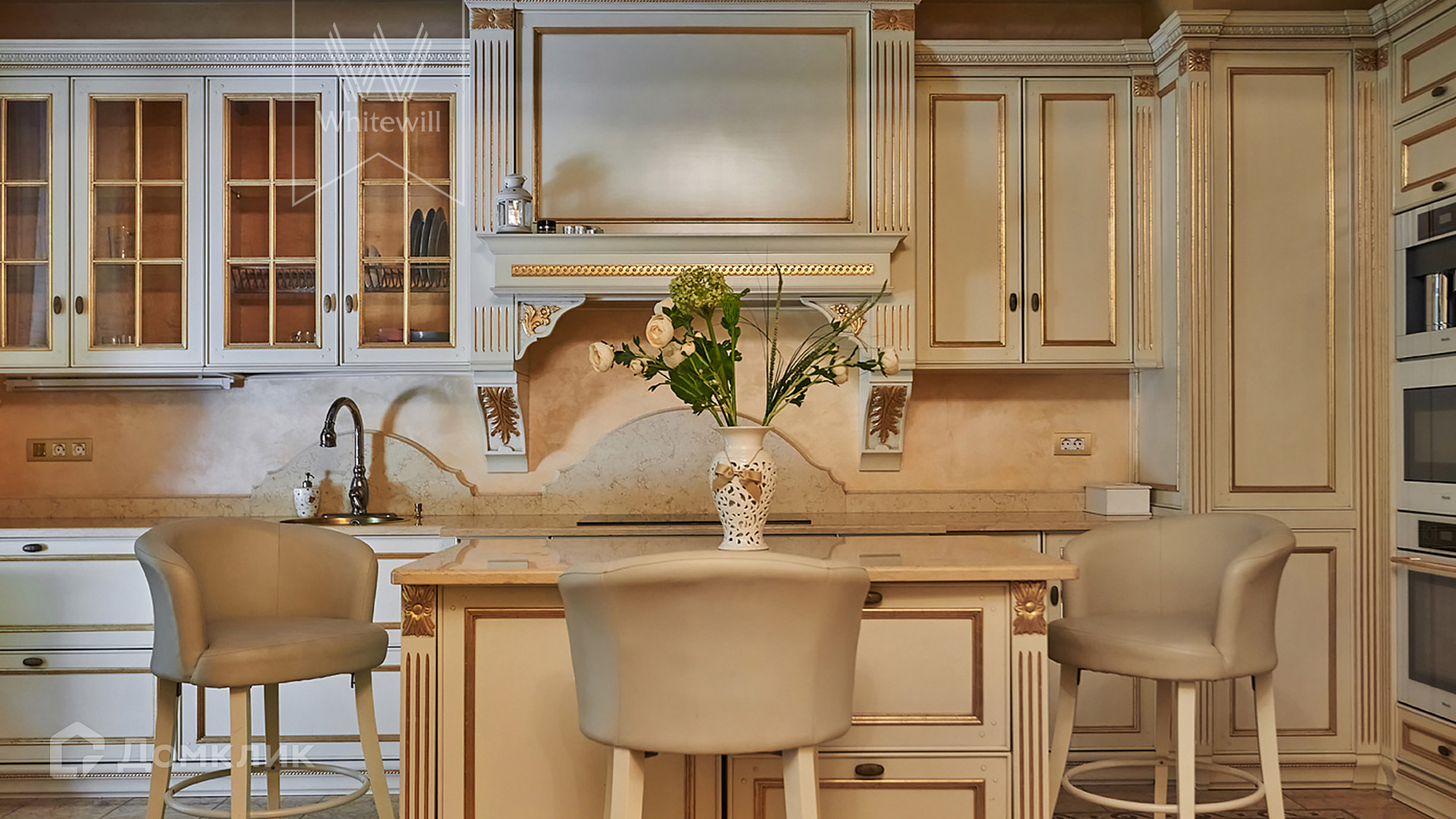 ID 854. С коллегами работаем 50/50. Трёхэтажный таунхаус площадью 323 м² в комплексе премиум-класса «Золотые Ключи-2» рядом с природным парком реки Раменки. Таунхаус включает три этажа, мансарду и подземный этаж. Выполнена премиальная отделка в стиле дворцовой классики. В отделке использованы ценные породы дерева, интерьер украшен лепниной и витражами.
