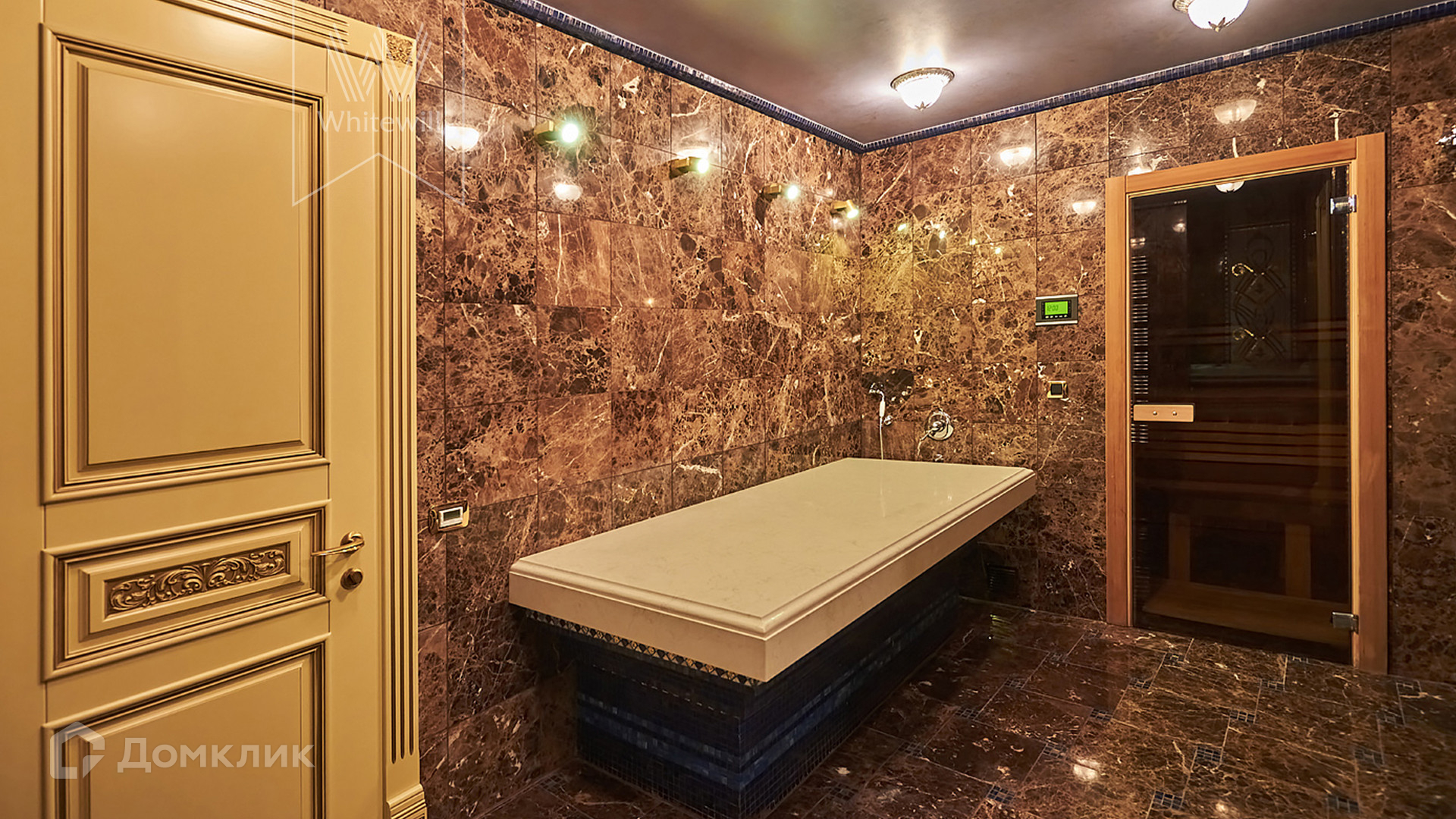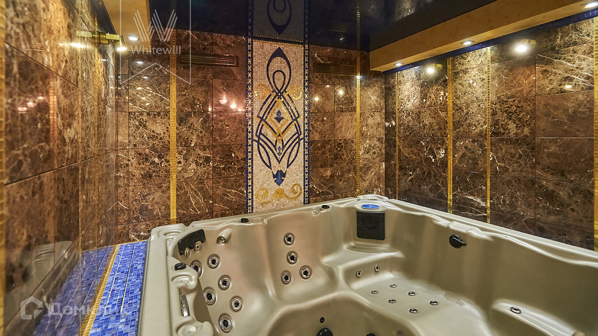 -1-й этаж: сауна, джакузи на 6 персон, стол для пенного массажа, санузел, постирочная, техническая комната с системой очистки воды.