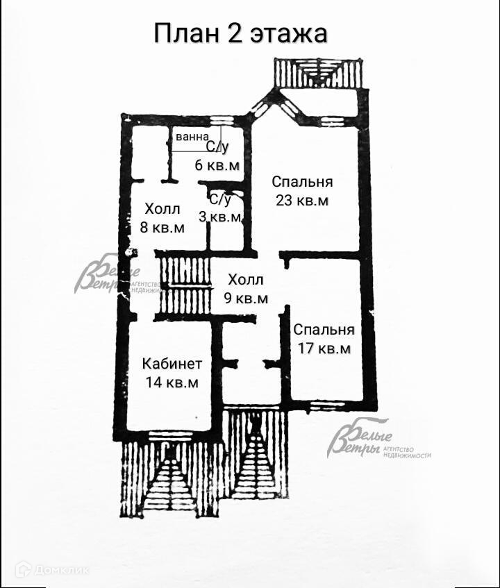 2-ой этаж: холл 9 кв.м, спальня 23 кв.м, кабинет 14 кв.м, спальня 17 кв.м, санузел 6 кв.м с ванной, кладовая-гардеробная 4 кв.м, холл 8 кв.м, санузел с ванной 3 кв.м..