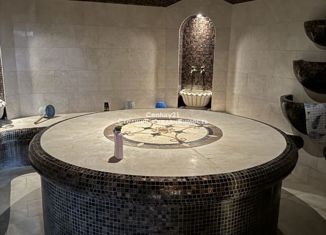 Арт. 74154099 Дом в закрытом поселке площадью 771.1м2, возведенный на прочном монолитном основании. Стены из толстого красного кирпича (64 см), перекрытия железно-бетонные. Коммуникации ( вода, газ, канализация) центральные, электроснабжение мощностью 20 кВт. В доме 17 комнат, 6 санузлов, изолированный хамам и уютный домашний кинотеатр. Земельны... |