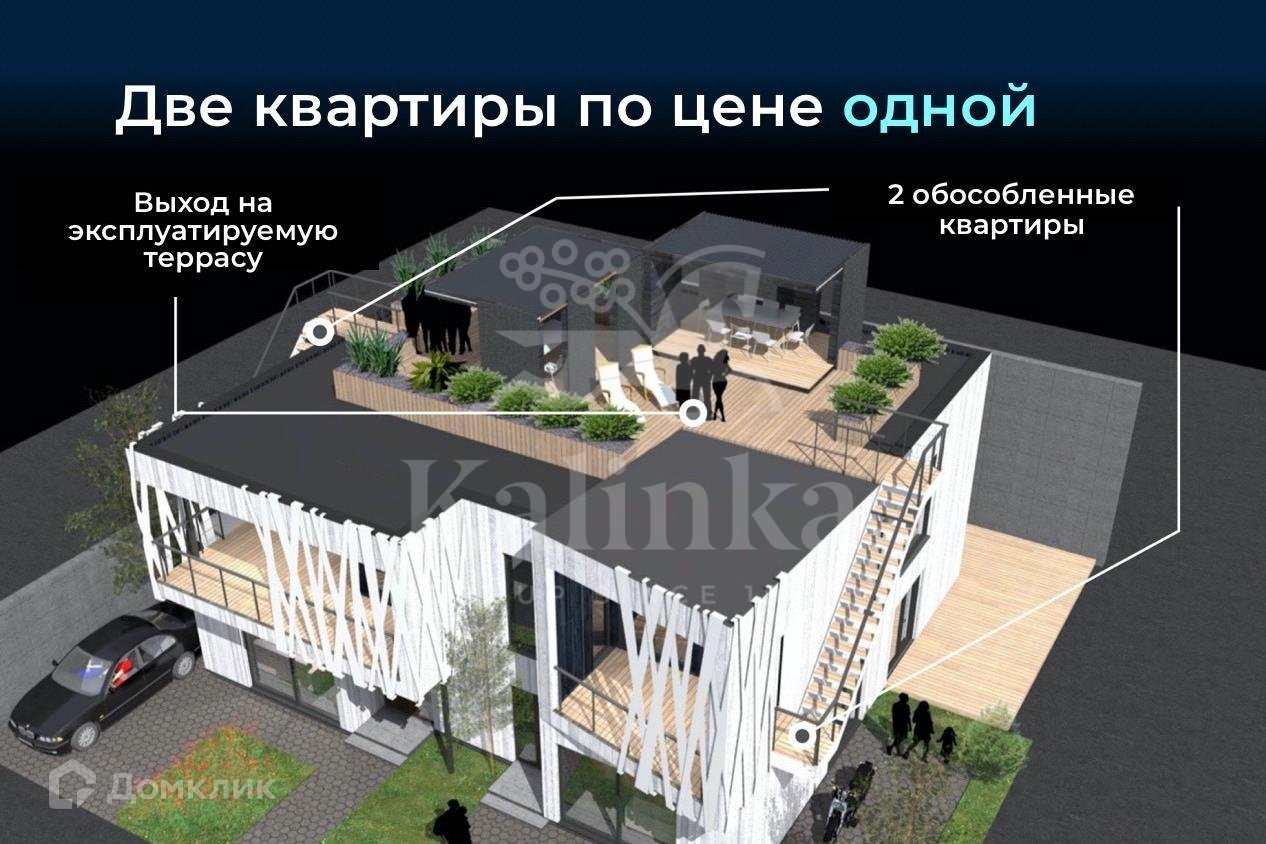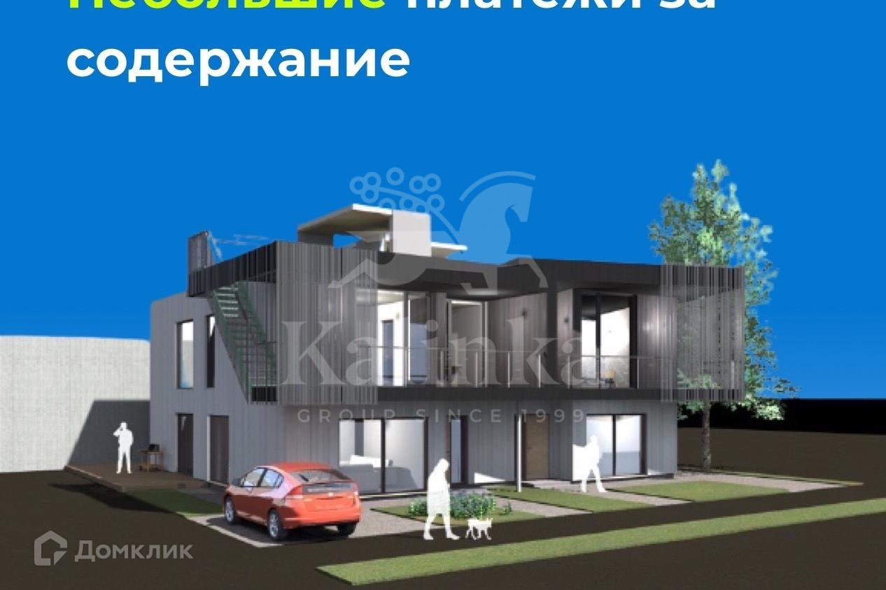 Дом в скандинавском стиле, состоящий из двух дуплексов. Один дуплекс под ключ с мебелью, второй дуплекс под ключ без мебели.  Дом продается единым лотом. Дом имеет функциональную планировку внутреннего пространства. На эксплуатируемой кровле расположена терраса с озеленением и беседкой.