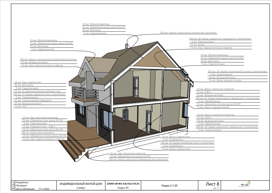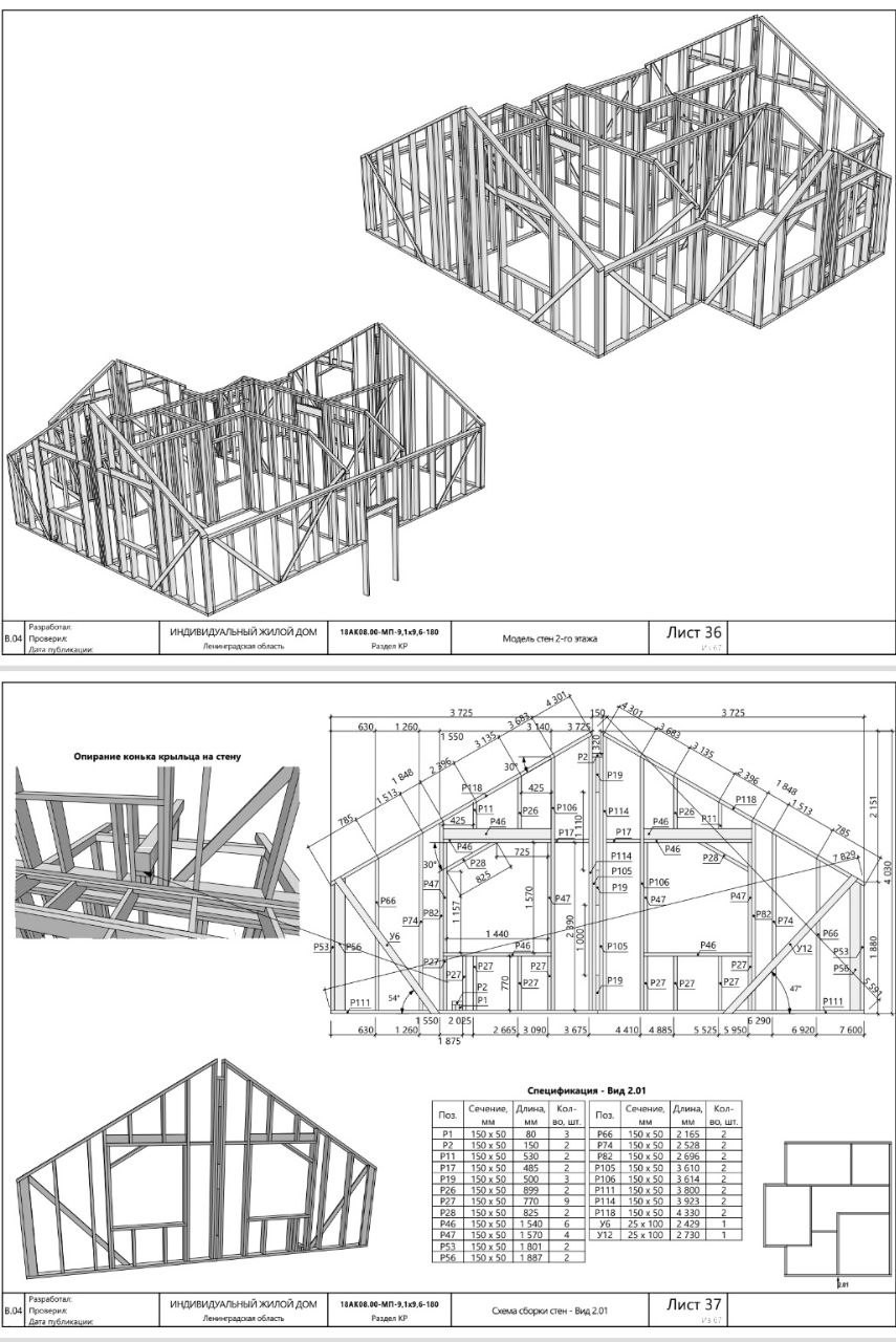 Состав проектной документации каркасного дома: