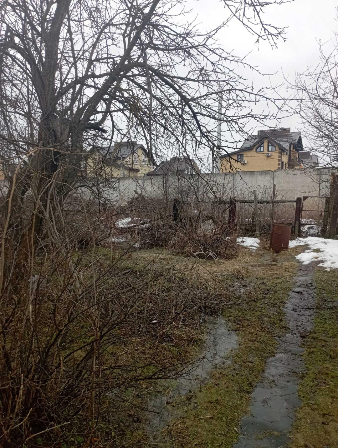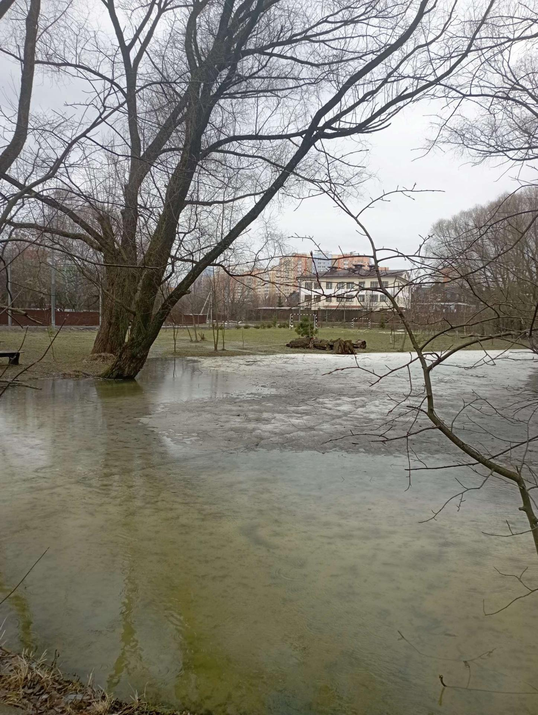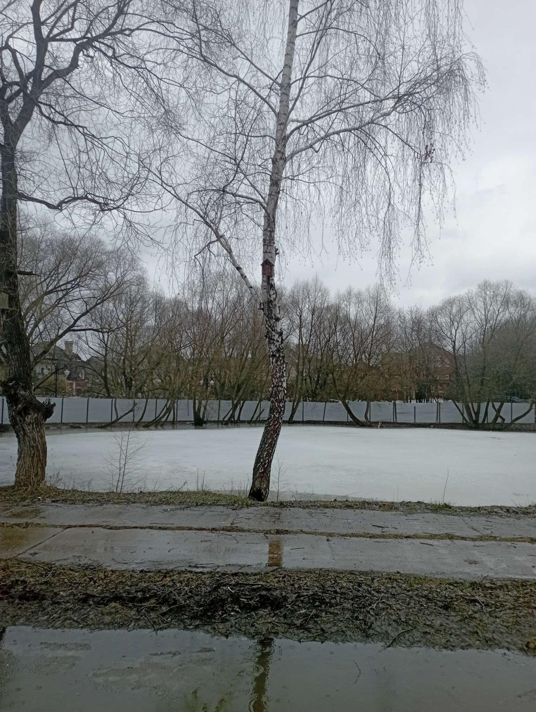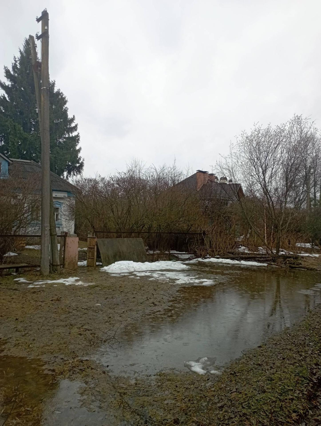 Перед участком пруд, также на территории имеется детская площадка.