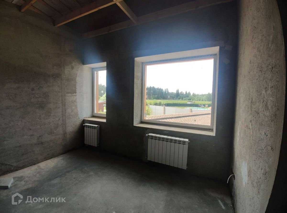 Идет чистовая отделка. Внутри дома выложены и оштукатурены межкомнатные перегородки, выполнена стяжка пола, залита бетонная лестница.