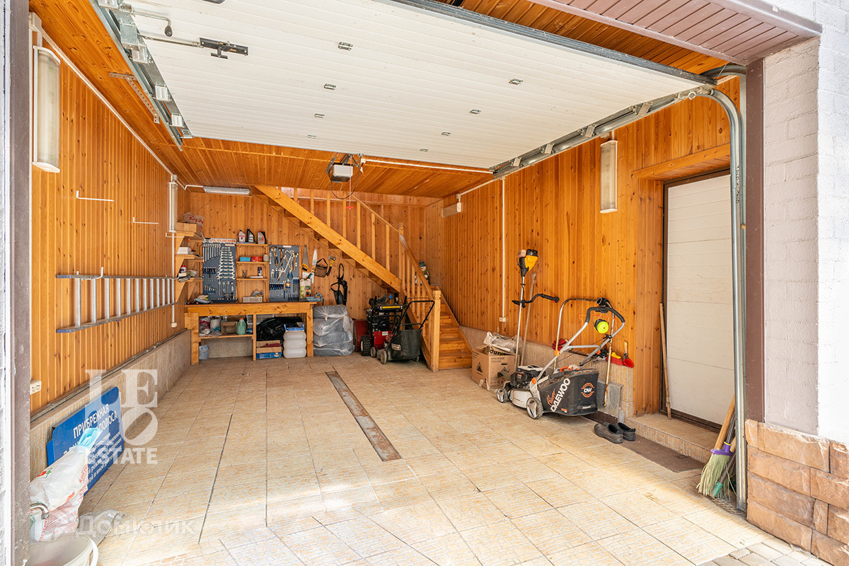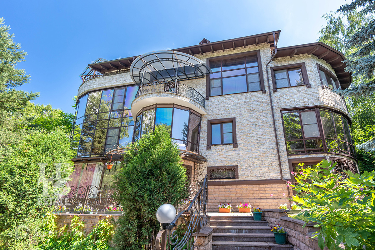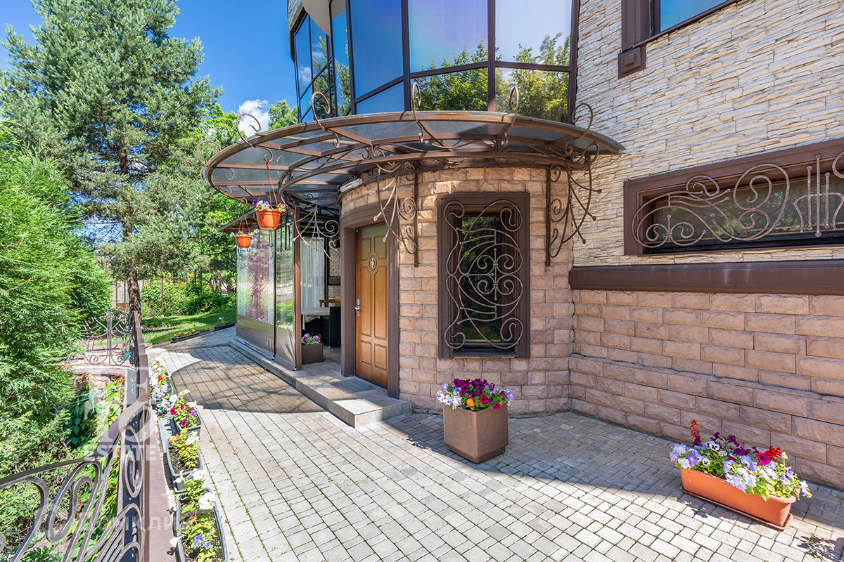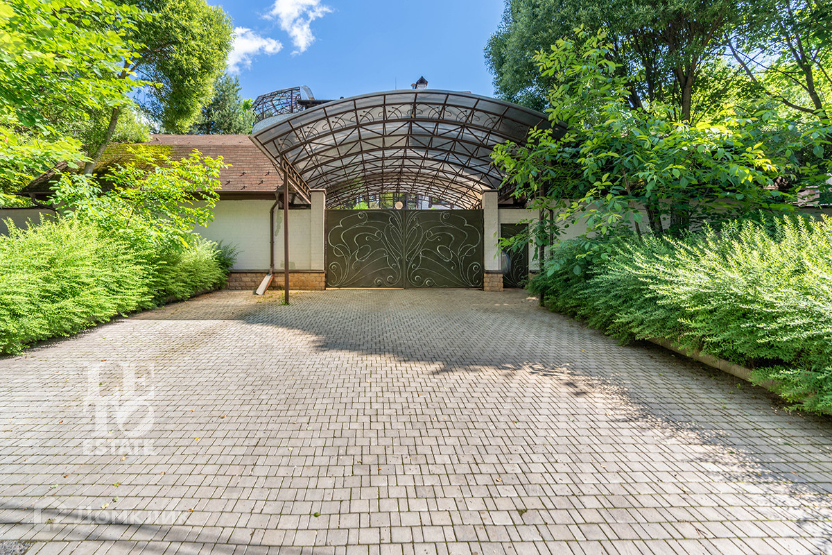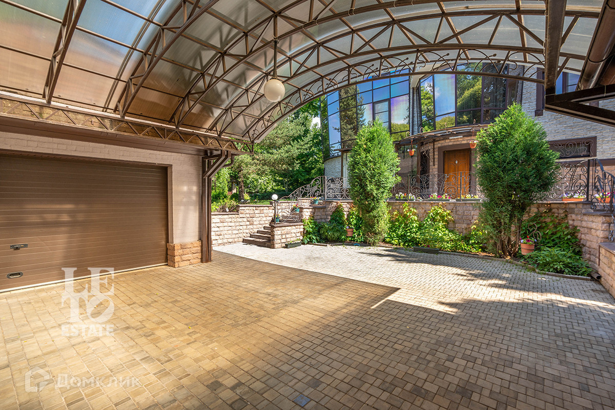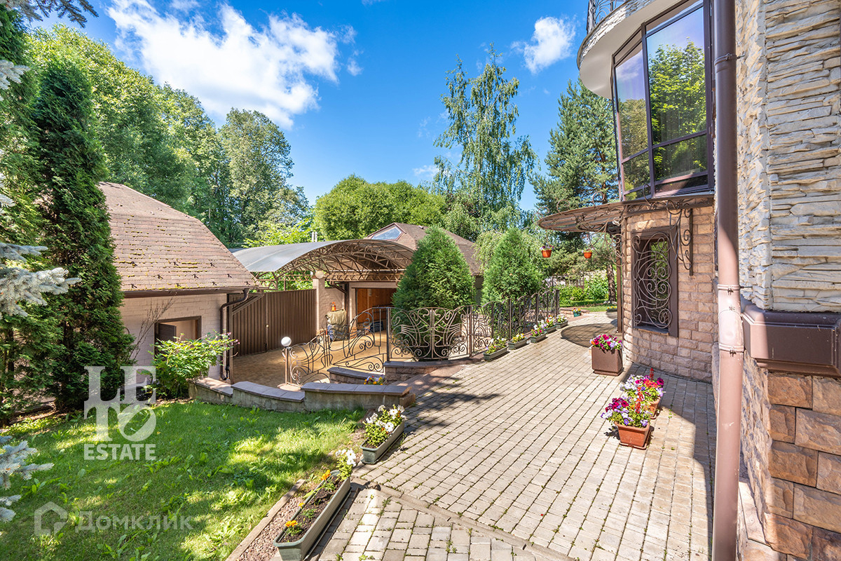 На участке правильной формы размером 16 сот выполненный ландшафтный дизайн, посажены хвойные и декоративные кустарники и растения, организованы цветочные клумбы, посажен газон, растут взрослые плодовые деревья и кустарники с малиной и смородиной. Помимо основного дома, на участке есть двухуровневый гараж и отдельный гостевой дом (можно использовать для обслуживающего персонала).