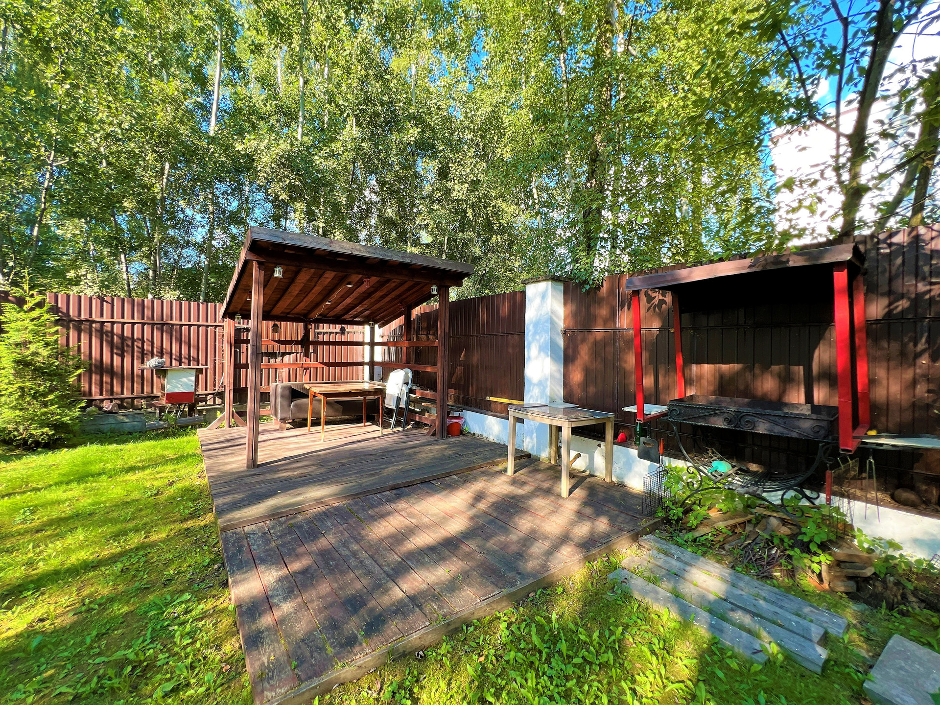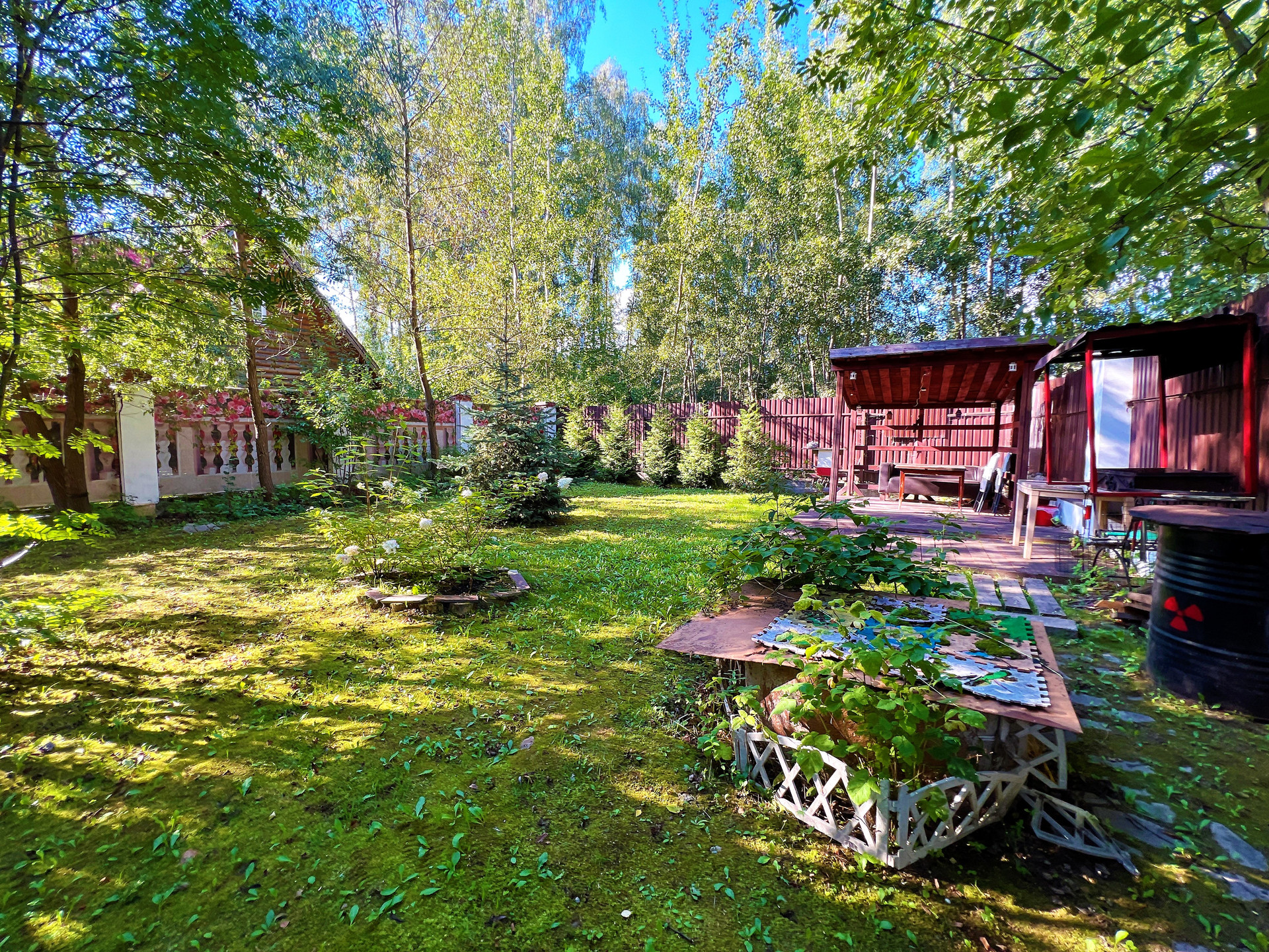 Участок огорожен по периметру профлистом. Автоматические ворота.