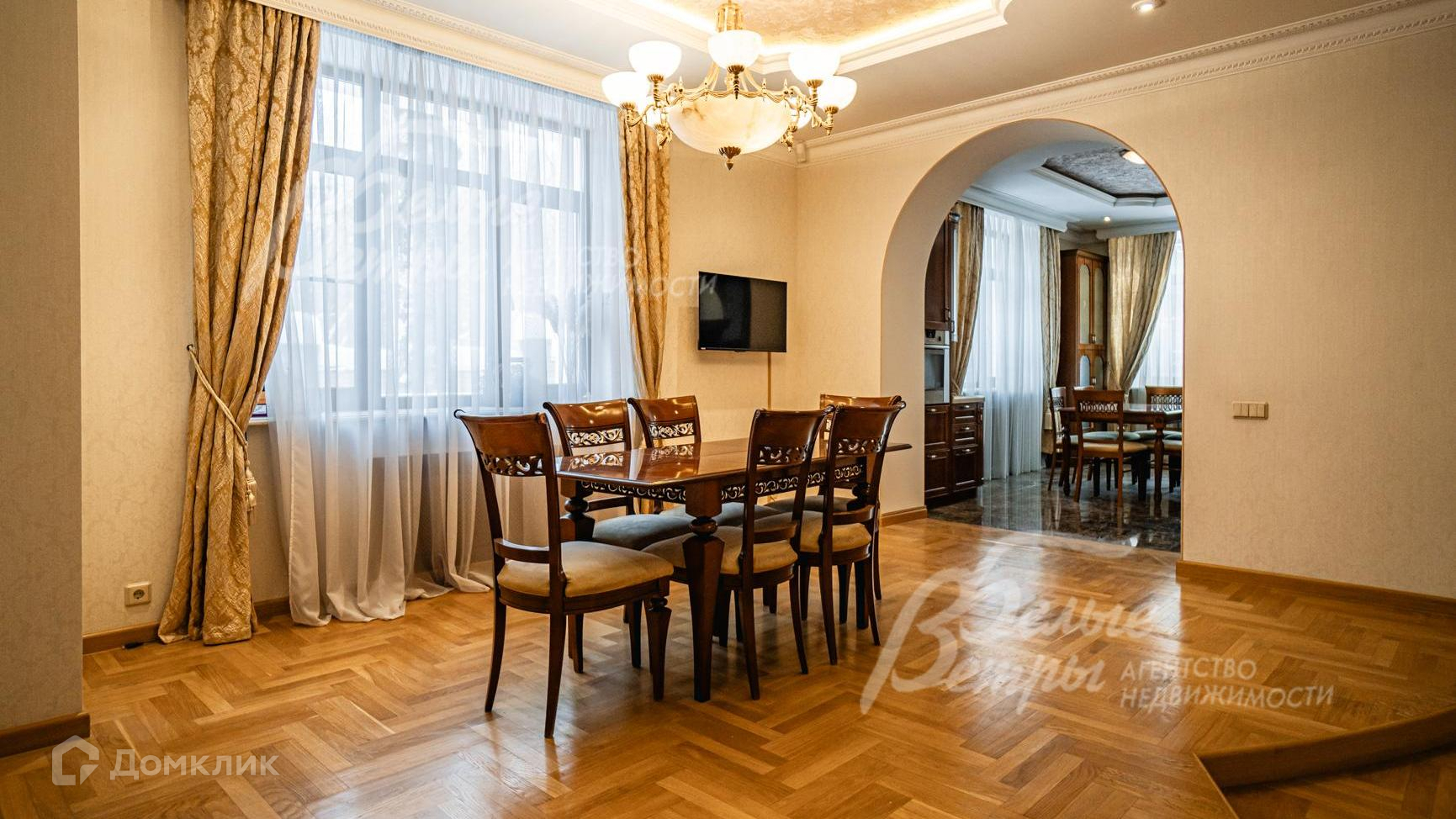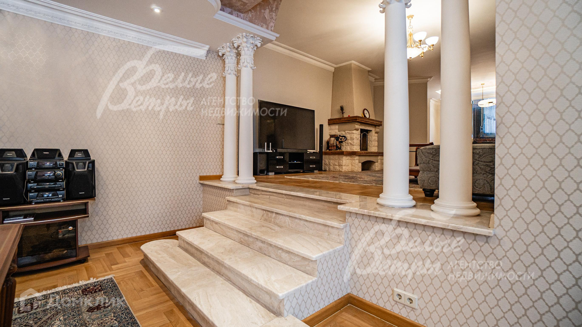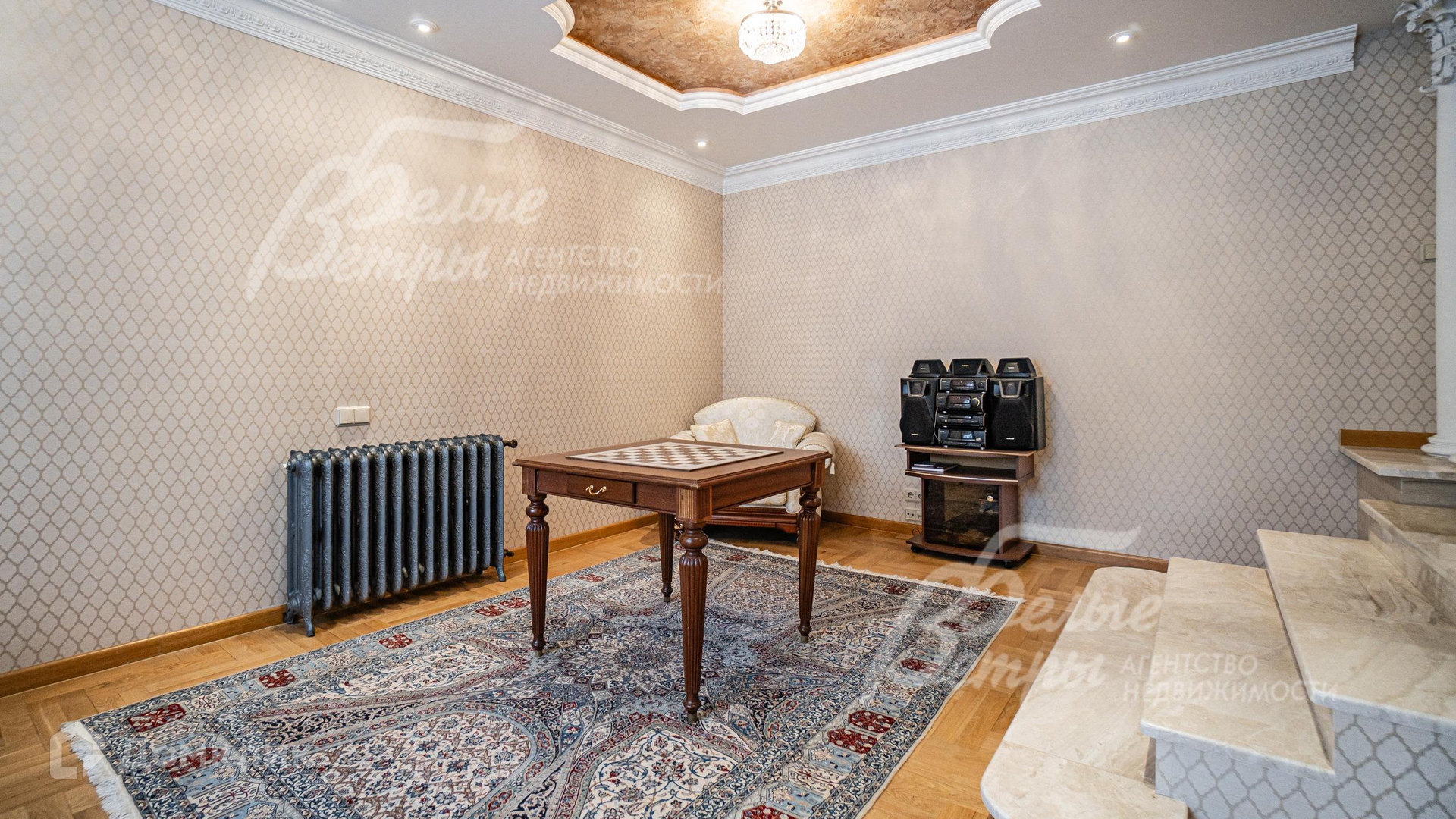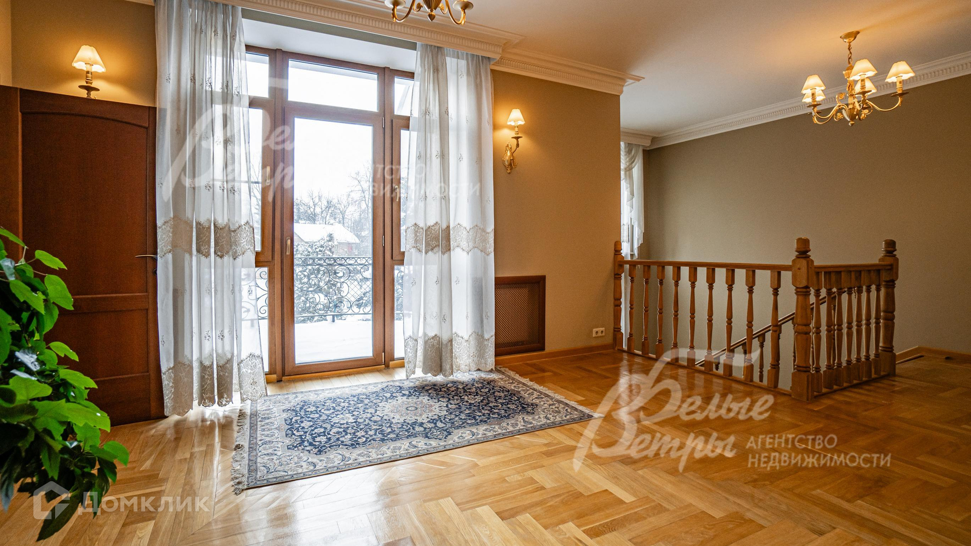 Внутренняя отделка: отделка выполнена в классическом стиле с использованием дорогих натуральных материалов, гипсовой лепнины и декора из массива дерева. На стенах тканевые обои (шелковые) в спальнях, венецианская штукатурка в СПА-зоне, покраска, плитка в санузлах. Отделка полов: крыльцо - гранит, прихожая и кухня - мраморная плитка Imperador Dark, жилые комнаты и гостиная - дубовый паркет наборный Майкоп, СПА-зона и санузлы - плитка и мозаика. Лестница на стальном каркасе, отделка ступеней, поручней и балясин - дуб, ширина 120 см. Потолки со сложными элементами, лепниной из гипса, на мансарде отделка потолка деревянными панелями. Установлена сантехника в классическом стиле марки GSI, эксклюзивные смесители, в мастер-спальне ванна с массажем, украшенная камнями Swarovski, с каретной пиковкой Treesse (Италия), в санузле на 2-м этаже ванна Treesse. Электрические теплые полы в СПА-зоне и в санузлах. Радиаторы чугунные на ножках в классическом стиле и современные арбониевые (Arbonia) - AFG Arbonia Forster Holding AG. Дорогие межкомнатные двери из массива GAROFOLI - SPLENDIA (Италия), полностью выполнены из дерева. Подоконники мраморные Crema Marfil..