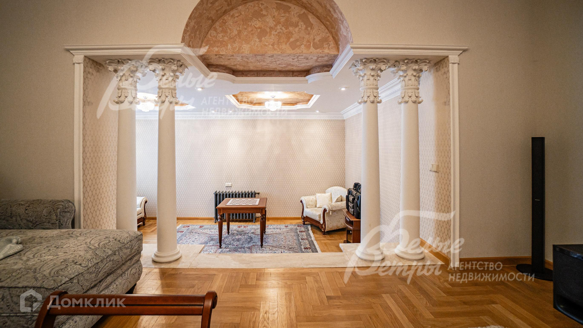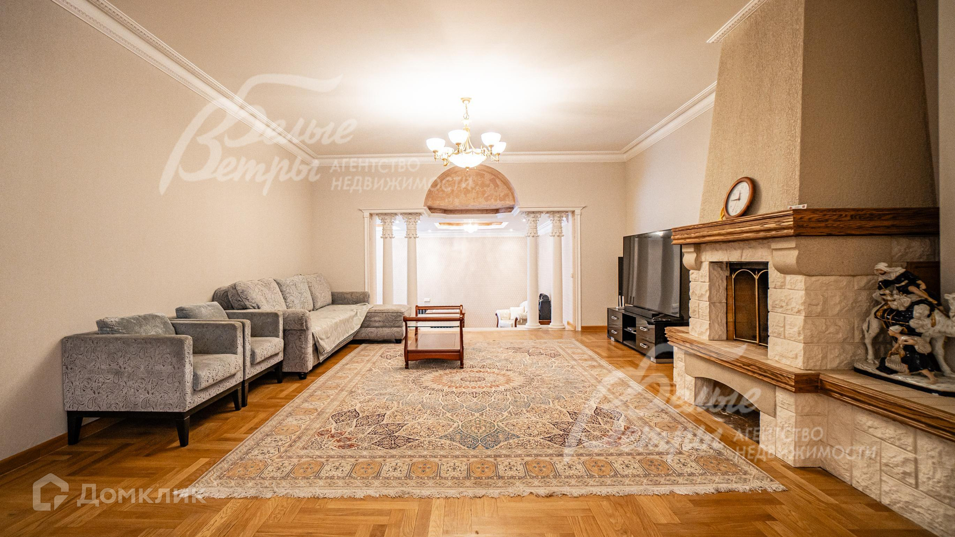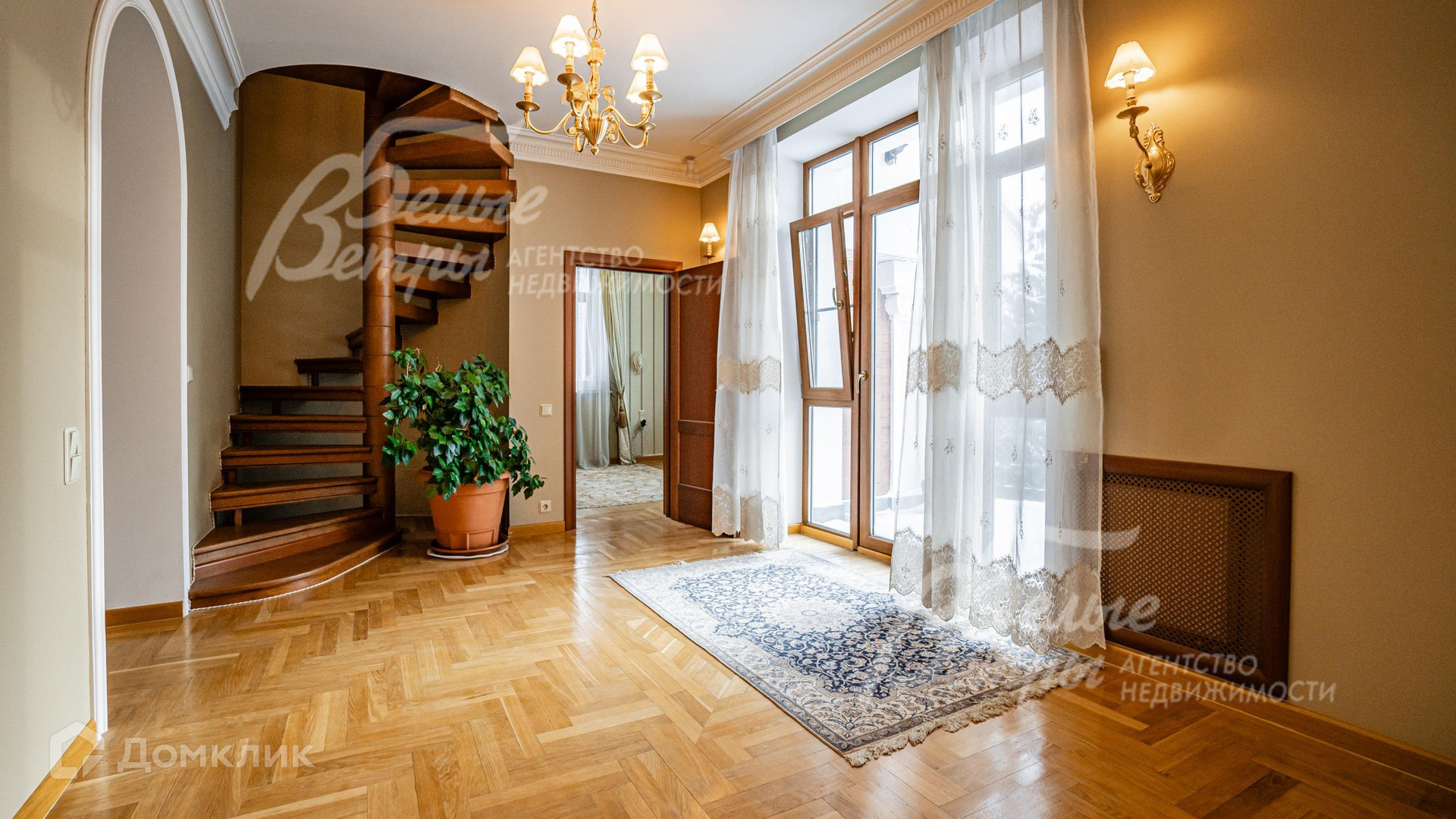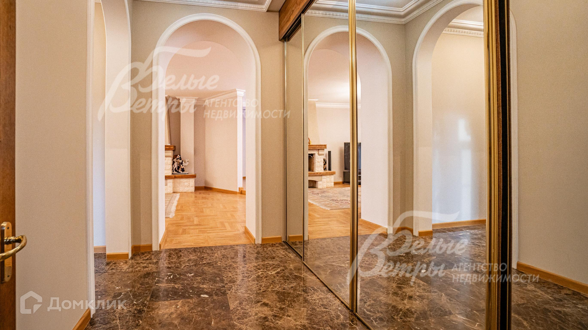 Внутренняя отделка: отделка выполнена в классическом стиле с использованием дорогих натуральных материалов, гипсовой лепнины и декора из массива дерева. На стенах тканевые обои (шелковые) в спальнях, венецианская штукатурка в СПА-зоне, покраска, плитка в санузлах. Отделка полов: крыльцо - гранит, прихожая и кухня - мраморная плитка Imperador Dark, жилые комнаты и гостиная - дубовый паркет наборный Майкоп, СПА-зона и санузлы - плитка и мозаика. Лестница на стальном каркасе, отделка ступеней, поручней и балясин - дуб, ширина 120 см. Потолки со сложными элементами, лепниной из гипса, на мансарде отделка потолка деревянными панелями. Установлена сантехника в классическом стиле марки GSI, эксклюзивные смесители, в мастер-спальне ванна с массажем, украшенная камнями Swarovski, с каретной пиковкой Treesse (Италия), в санузле на 2-м этаже ванна Treesse. Электрические теплые полы в СПА-зоне и в санузлах. Радиаторы чугунные на ножках в классическом стиле и современные арбониевые (Arbonia) - AFG Arbonia Forster Holding AG. Дорогие межкомнатные двери из массива GAROFOLI - SPLENDIA (Италия), полностью выполнены из дерева. Подоконники мраморные Crema Marfil..