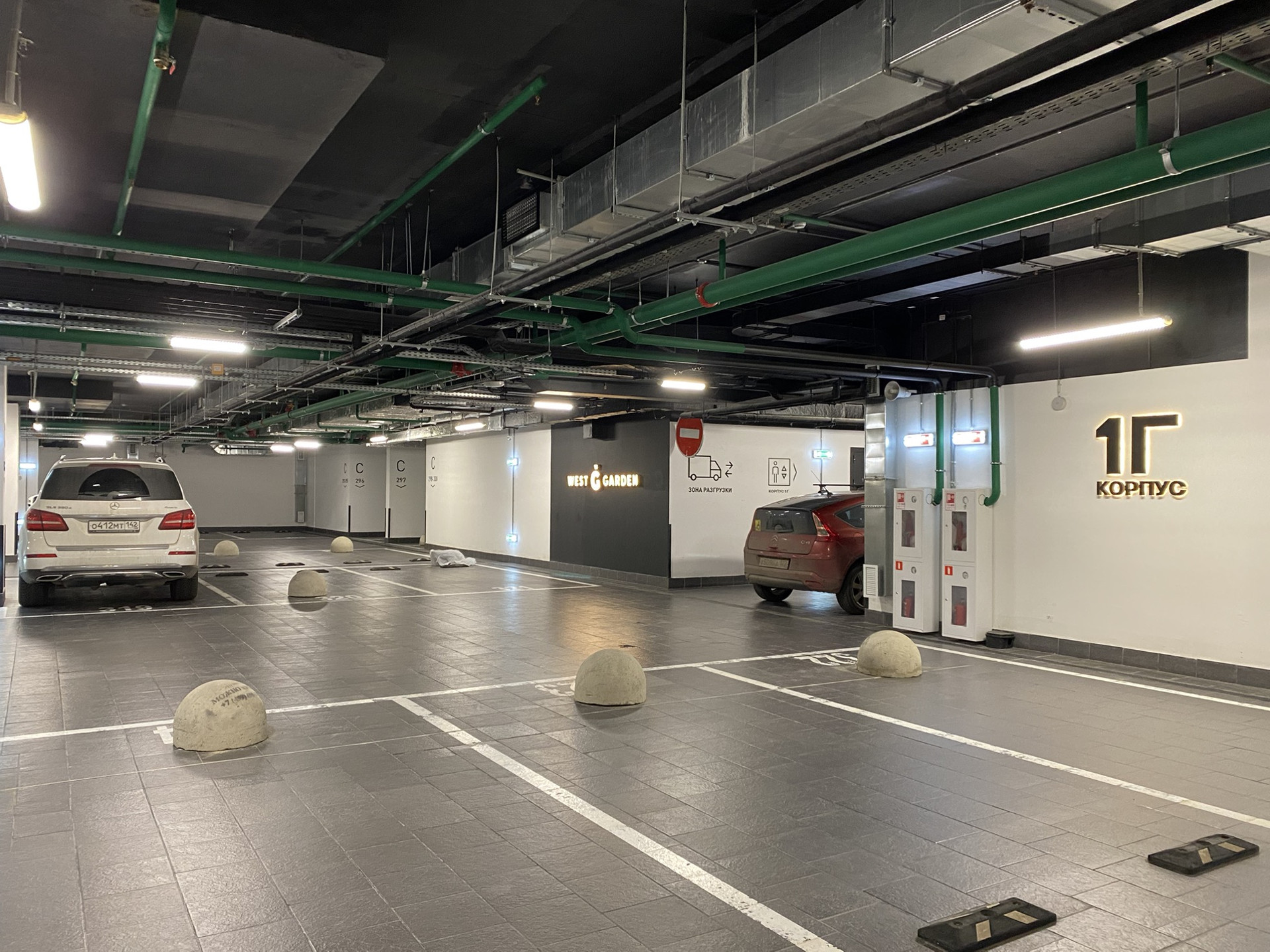 Парковочное машиноместо в ЖК Вест Гарден корпус Г. Очень удобное расположение, близко к лифтам.