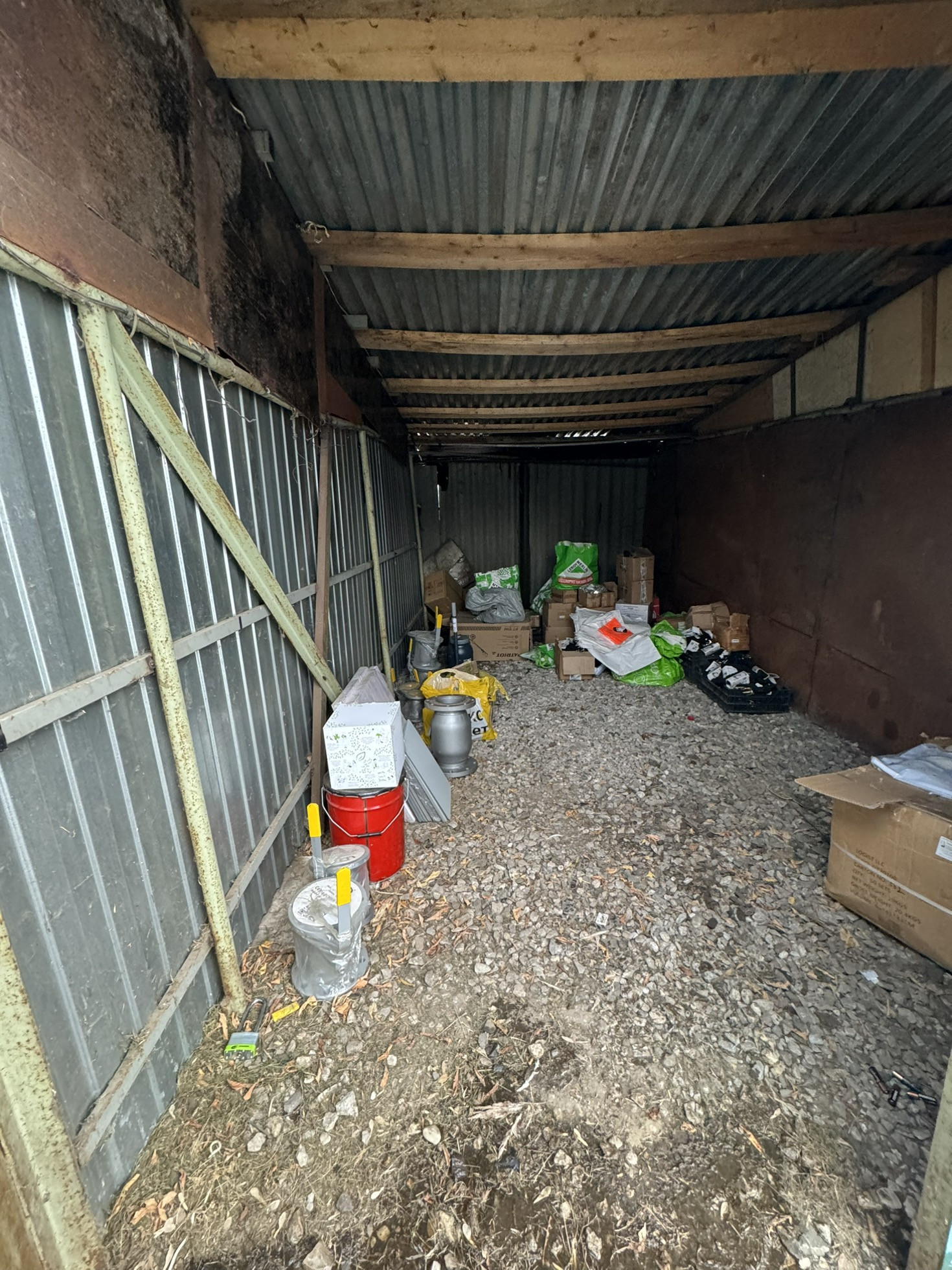 Крыша - новый профлист. Пол - укатанный щебень. Если не продам до лета то в июне буду обшивать и делать бетонный пол.
