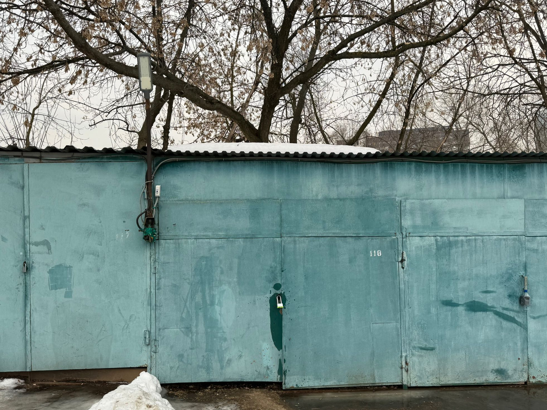 Есть возможность подключить электричество, т.к. столб с распределительным коробом находится на углу гаража.