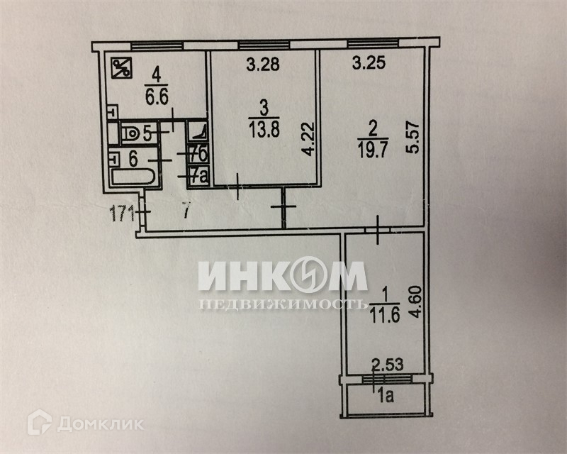 Общая площадь 62.6 м2