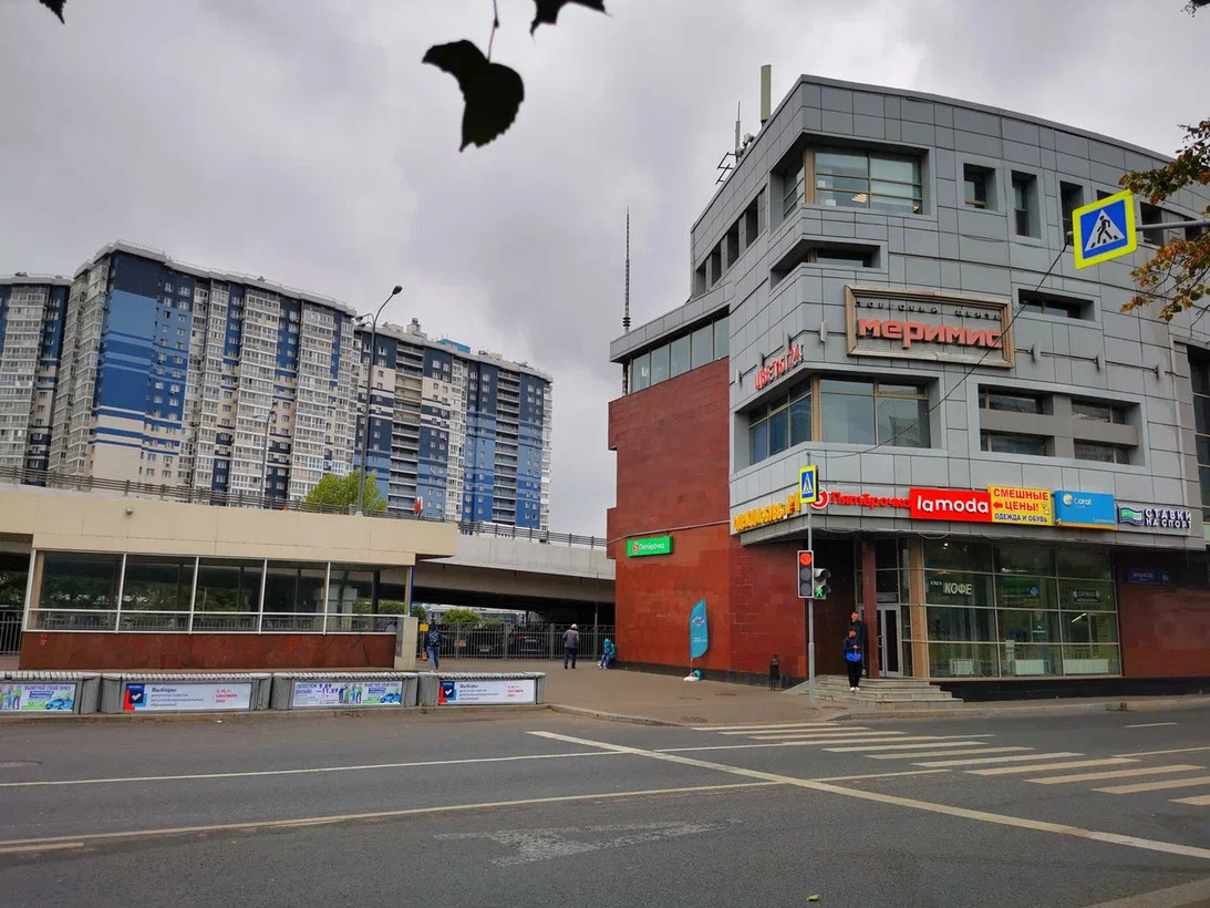 Рядом с домом есть большой магазин, возле метро много торговых центров,