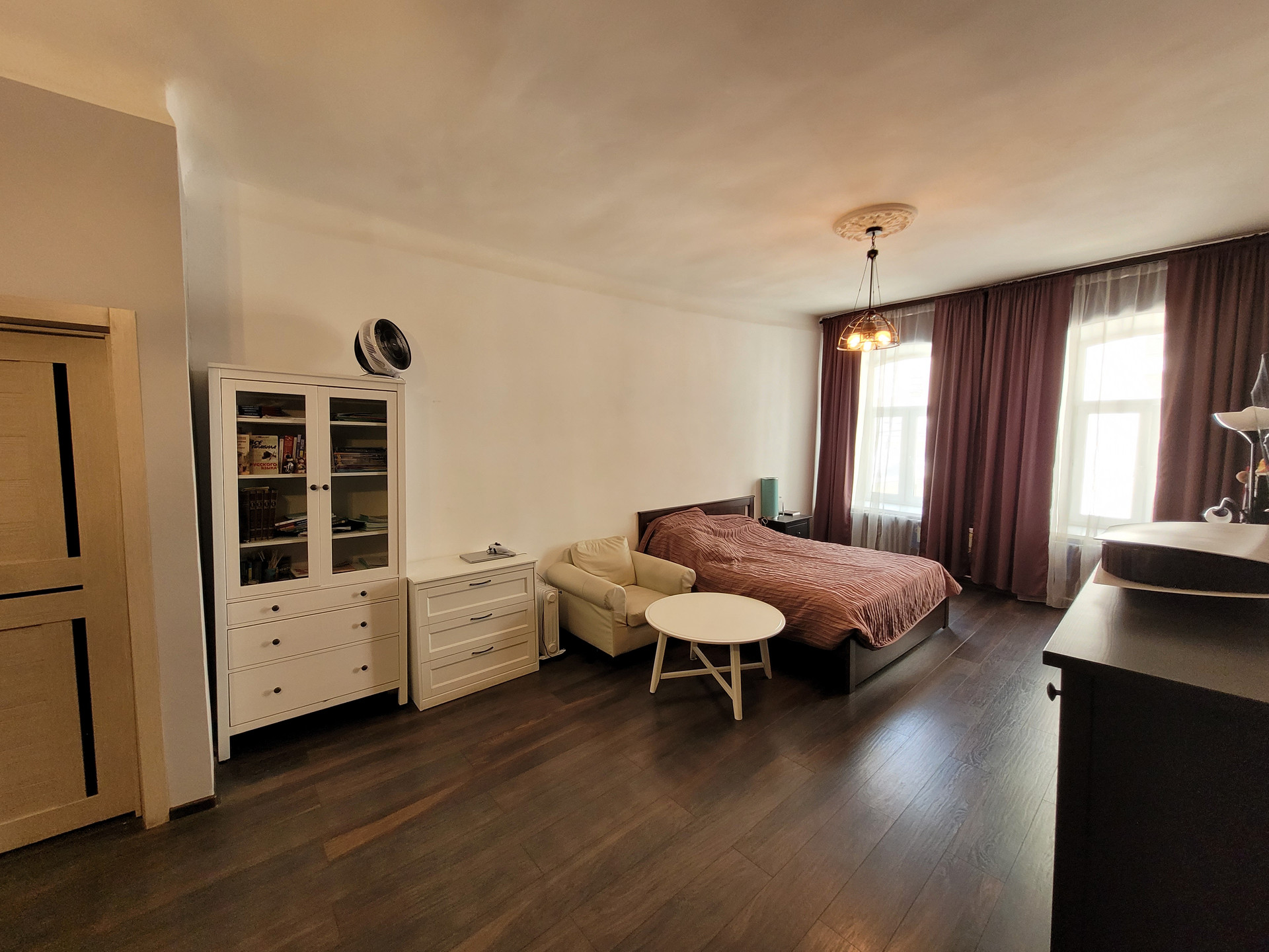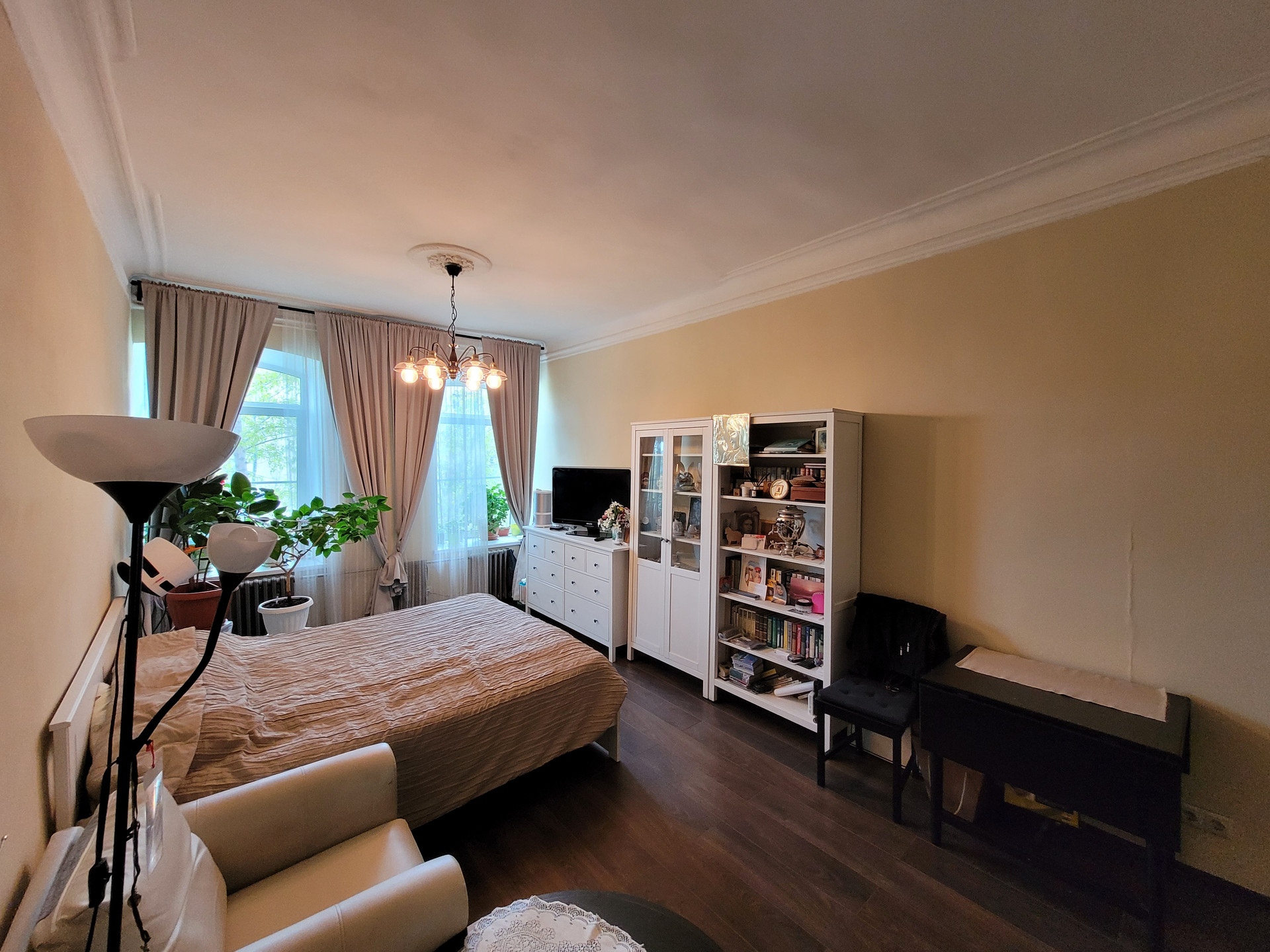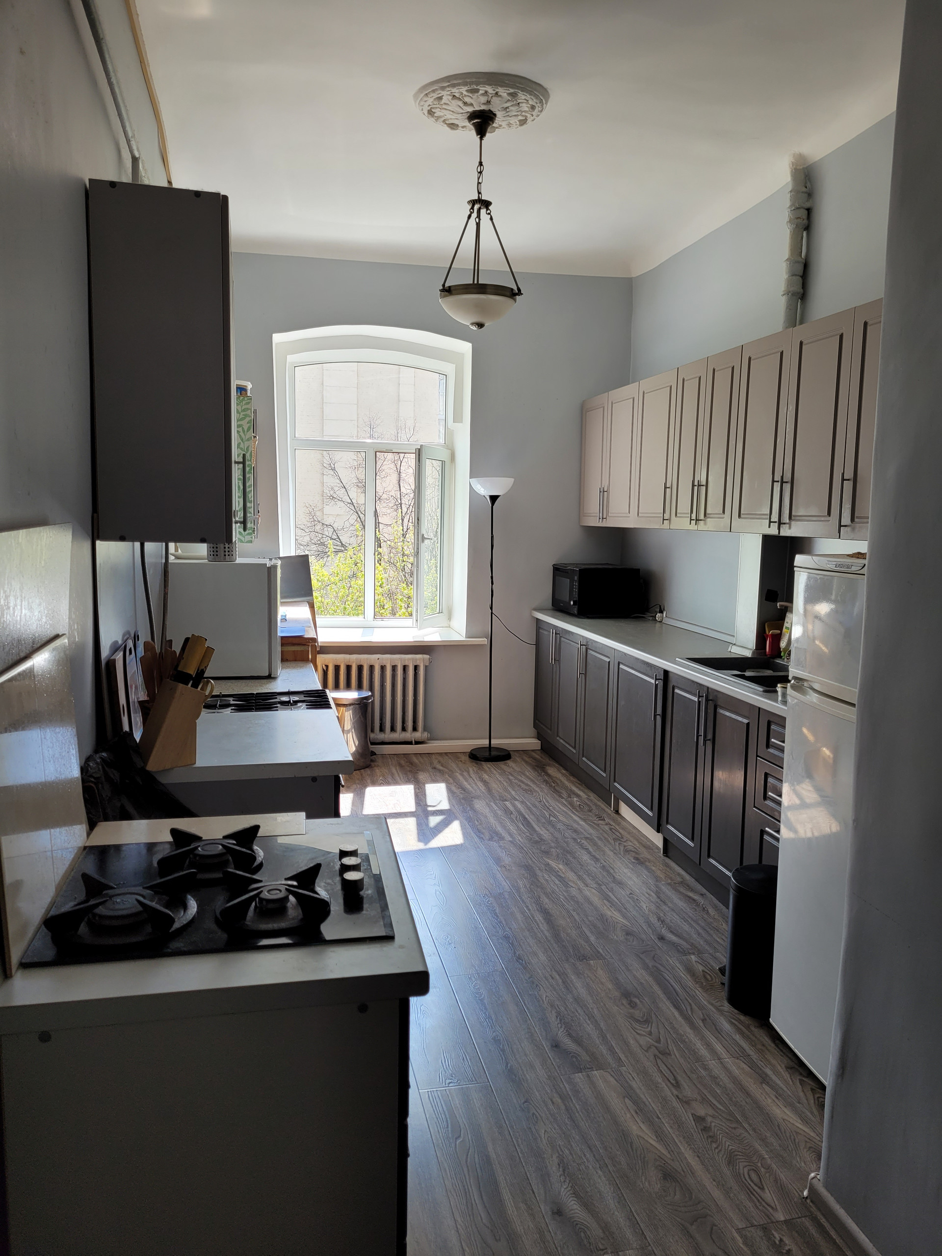 На четвёртом этаже четырёхэтажного здания Вас ожидает просторная тёплая светлая коммунальная квартира с окнами на северо-восток и юго-запад.