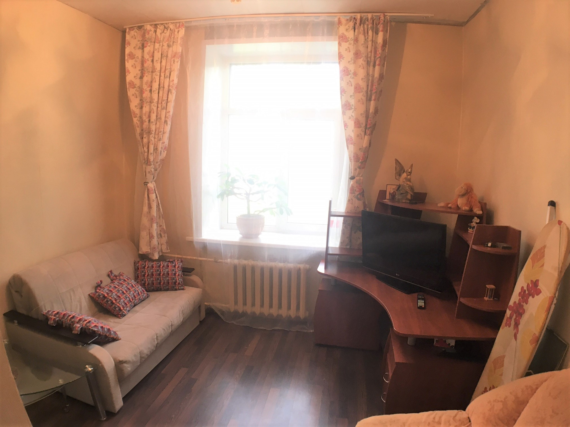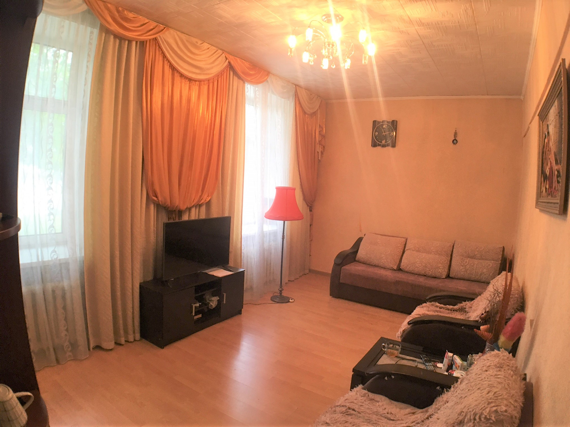 Изолированные комнаты 19,6 кв.м. и 11,0 кв.м. в трехкомнатной квартире на первом этаже трехэтажного кирпичного дома, раздельные лицевые счета, два кадастровых номера, состояние как на фото. Адекватный, работающий сосед.