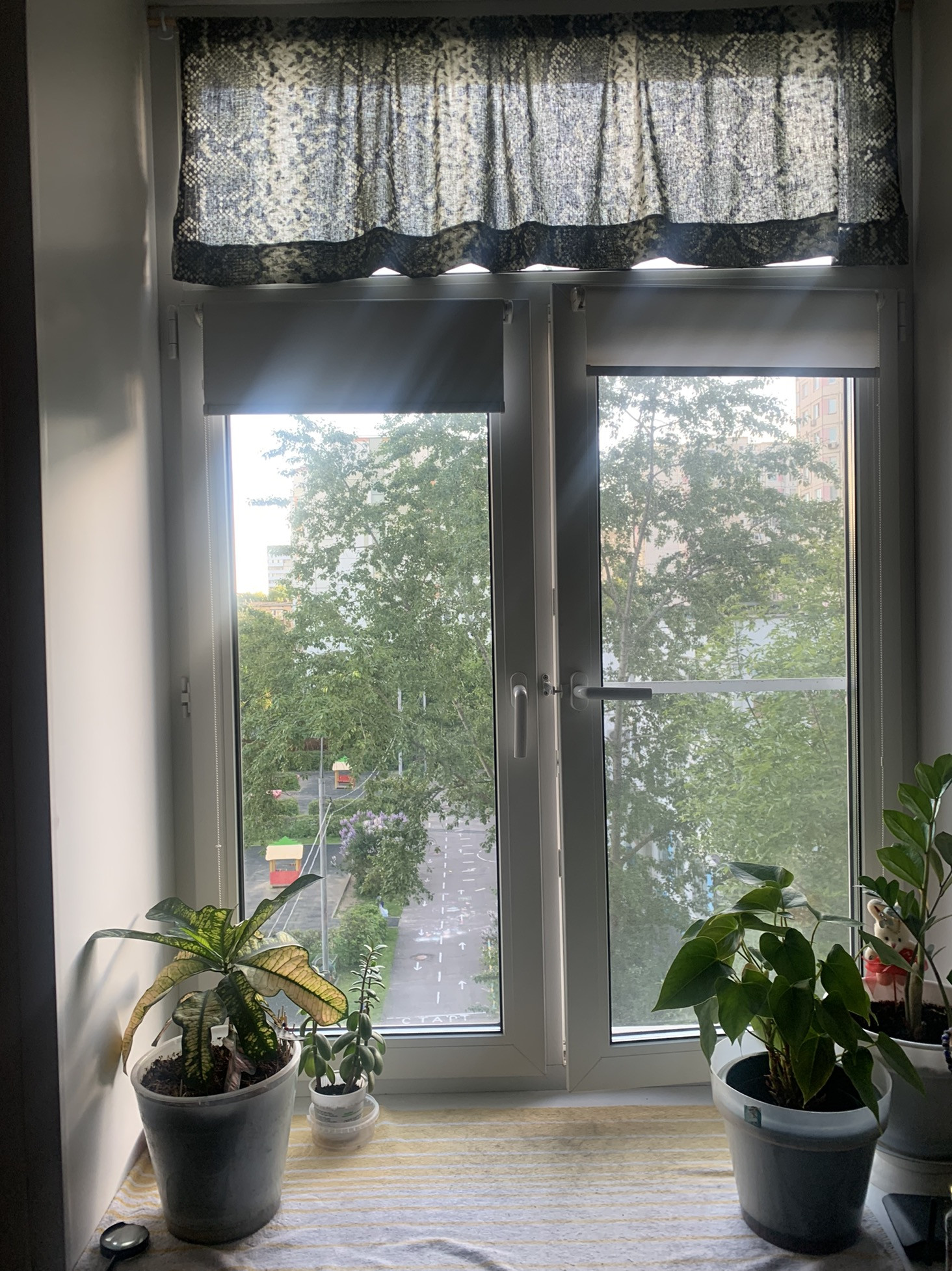 Новое пластиковое окно выходит на детский сад.