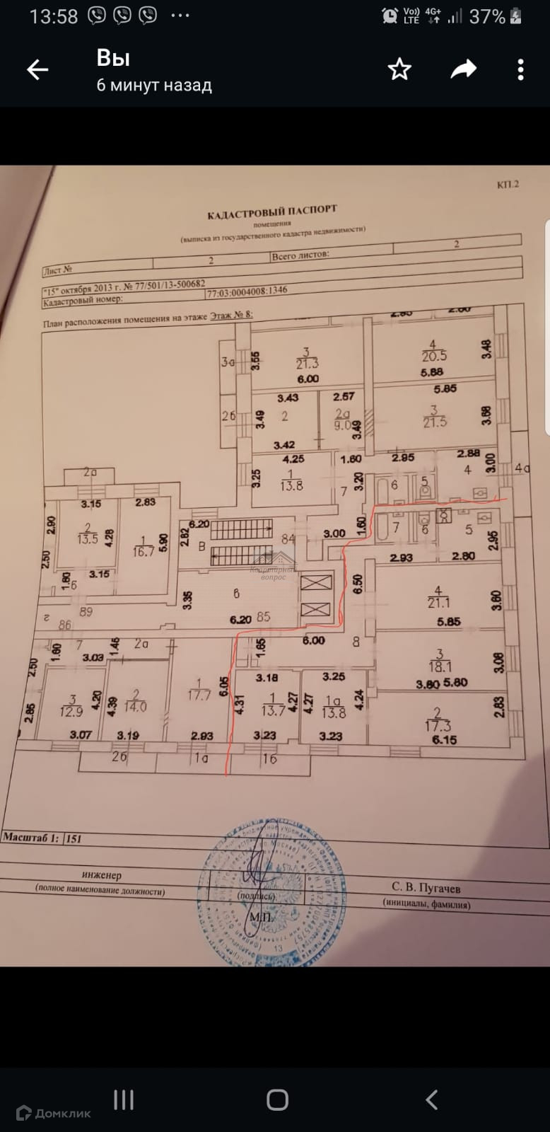 Жилая площадь 13.7 м2