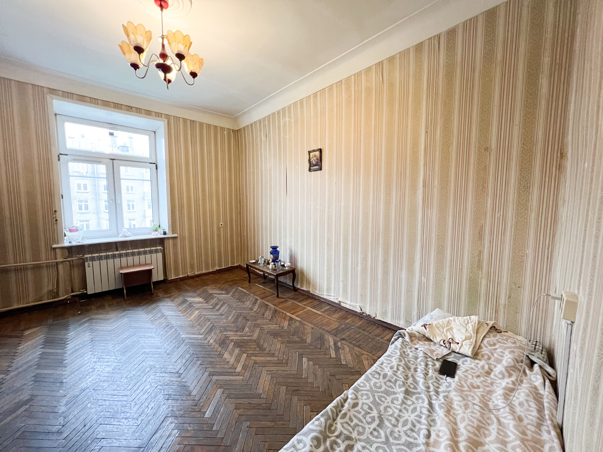 Продается комната в четырехкомнатной квартире. Высокие потолки, отличное расположение, комната правильно формы. Отличная транспортная доступность и развитая инфраструктура района.