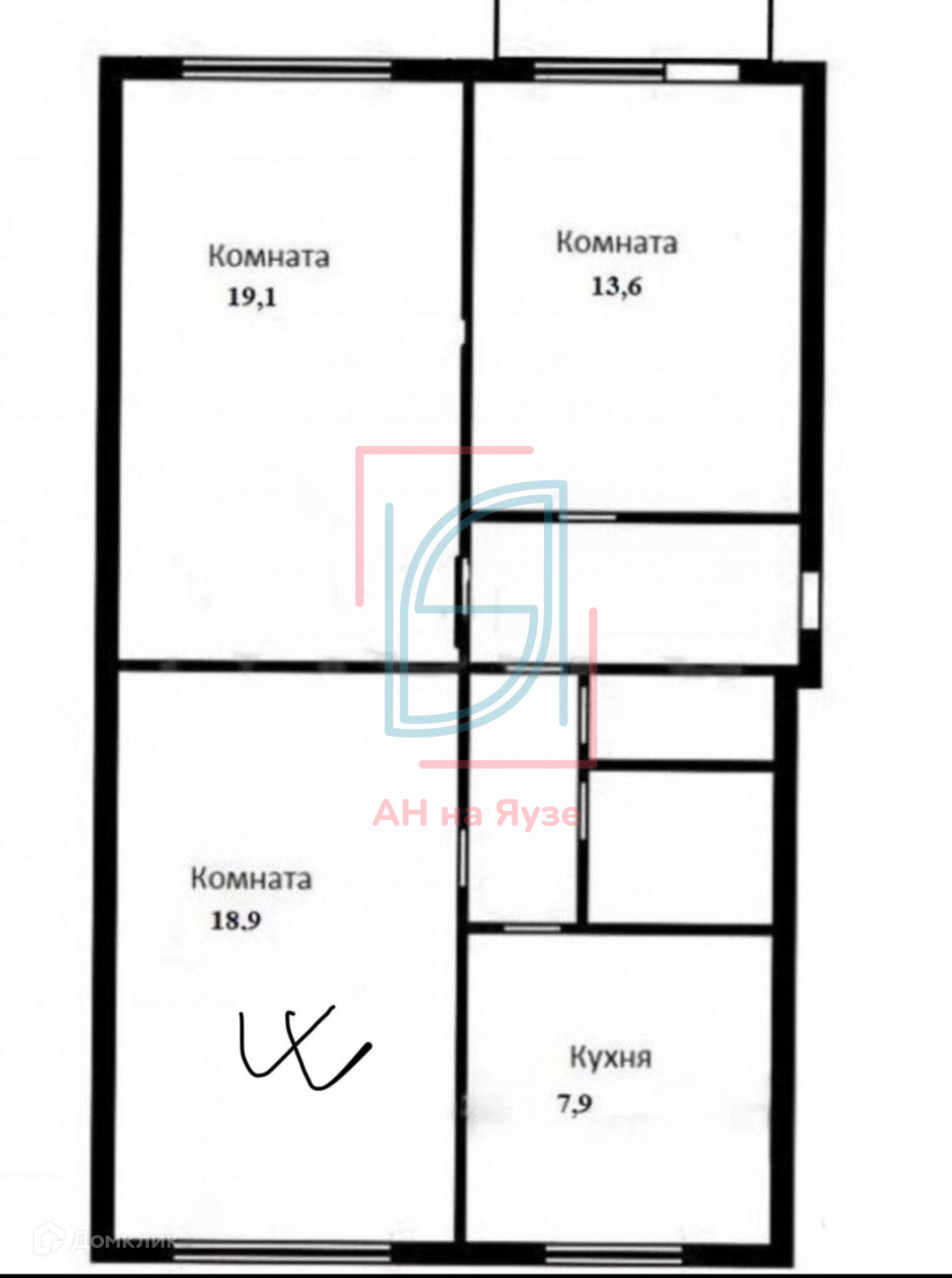 Жилая площадь 19 м2