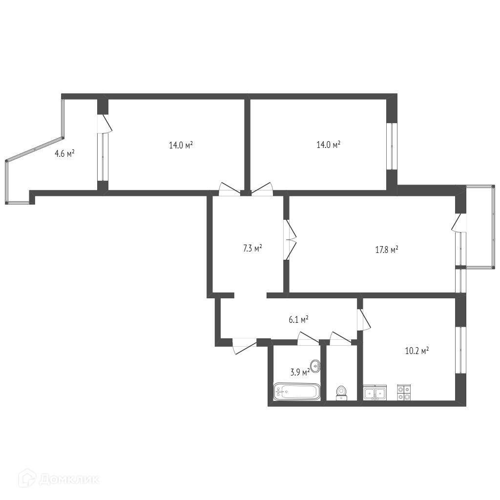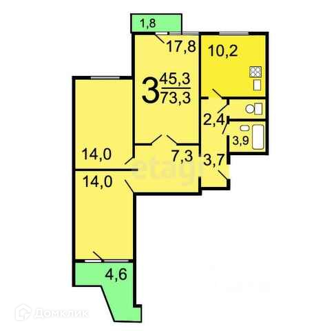 Комнат в квартире 3