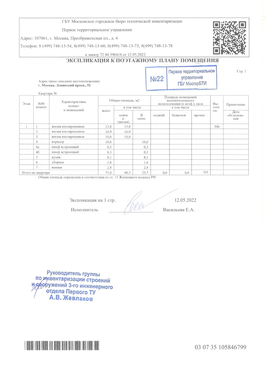 Общая площадь 73 м2