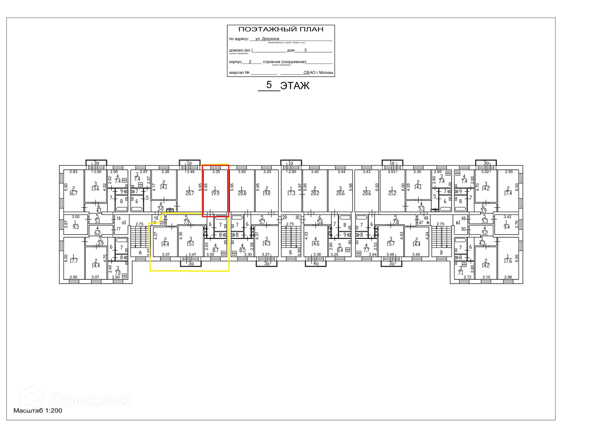 Общая площадь 19.9 м2