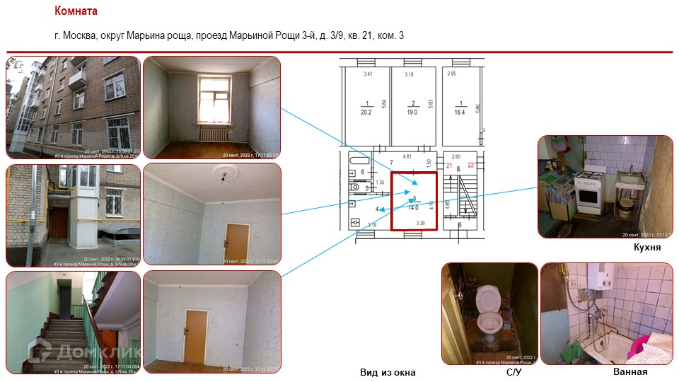 Комната, 14 м2, на продажу в Москве, 3-й проезд Марьиной Рощи, 3/9