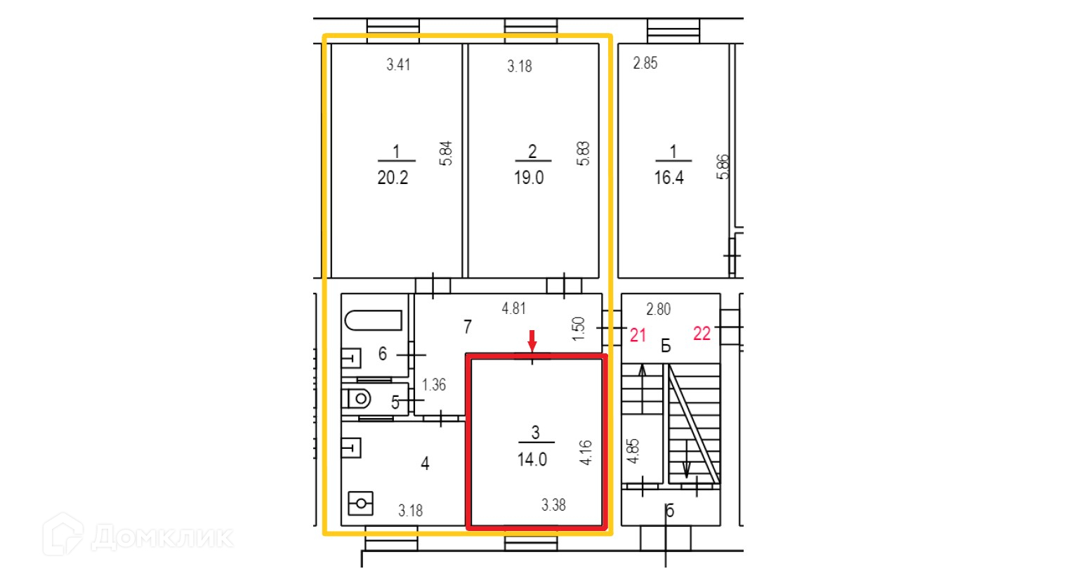 Площадь комнат