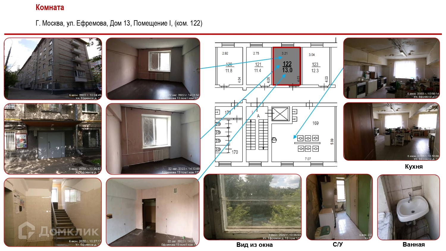 Комната, 13 м2, на продажу в Москве, улица Ефремова, 13
