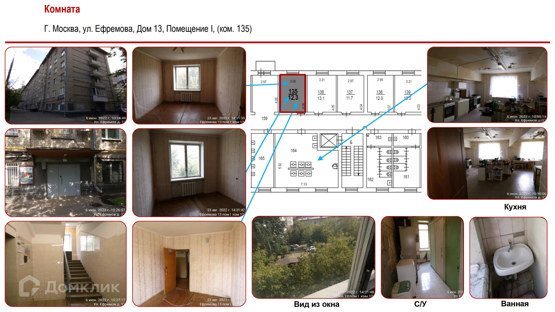 Комната, 12.3 м2, на продажу в Москве, улица Ефремова, 13