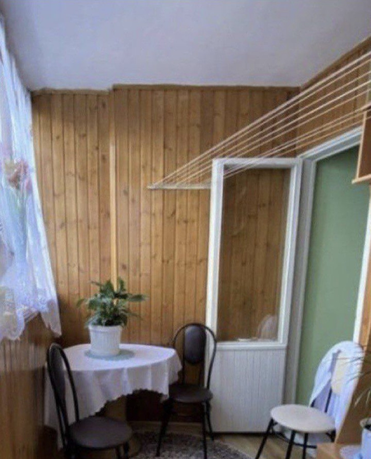 Балкон застеклен и обшит.