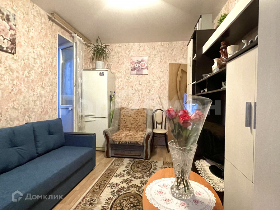 Площадь комнаты 13 м.кв., выход на лоджию с кладовым помещением.  Комната полностью готова к проживанию, не требует дополнительных вложений. Мебель остается по договоренности.