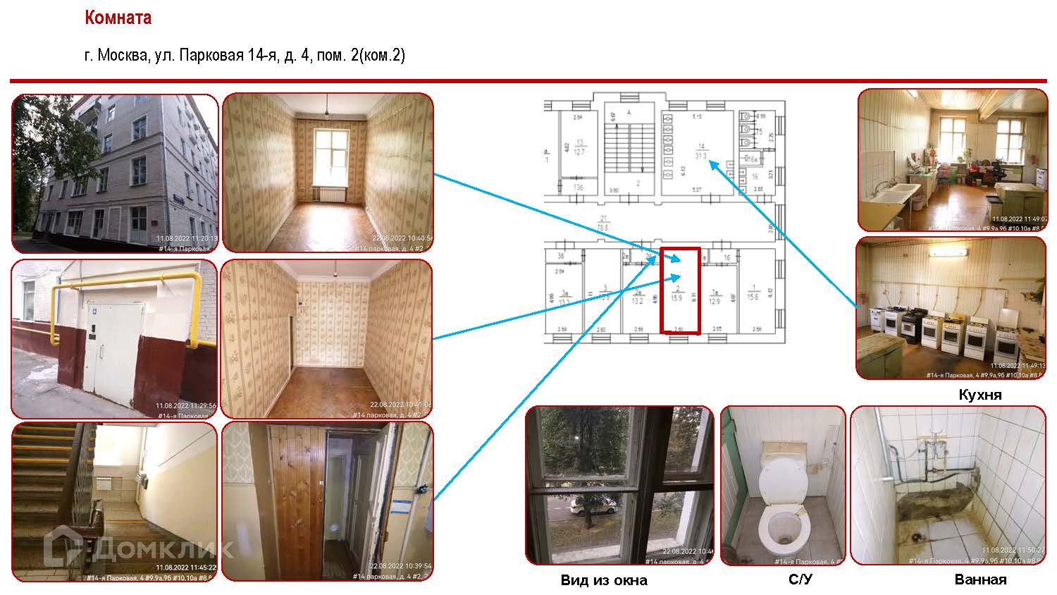 Комната, 15.9 м2, на продажу в Москве, 14-я Парковая улица, 4