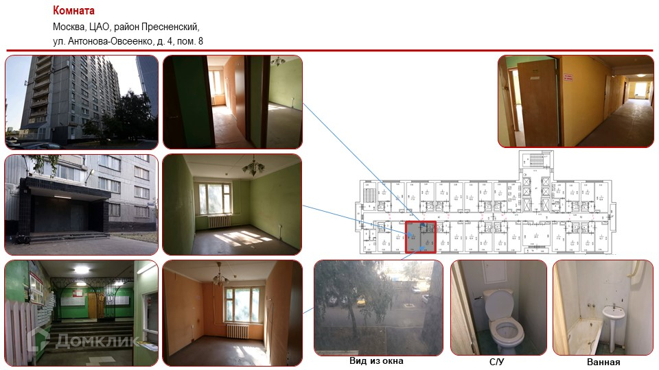 Комната, 38.9 м2, на продажу в Москве, улица Антонова-Овсеенко, 4