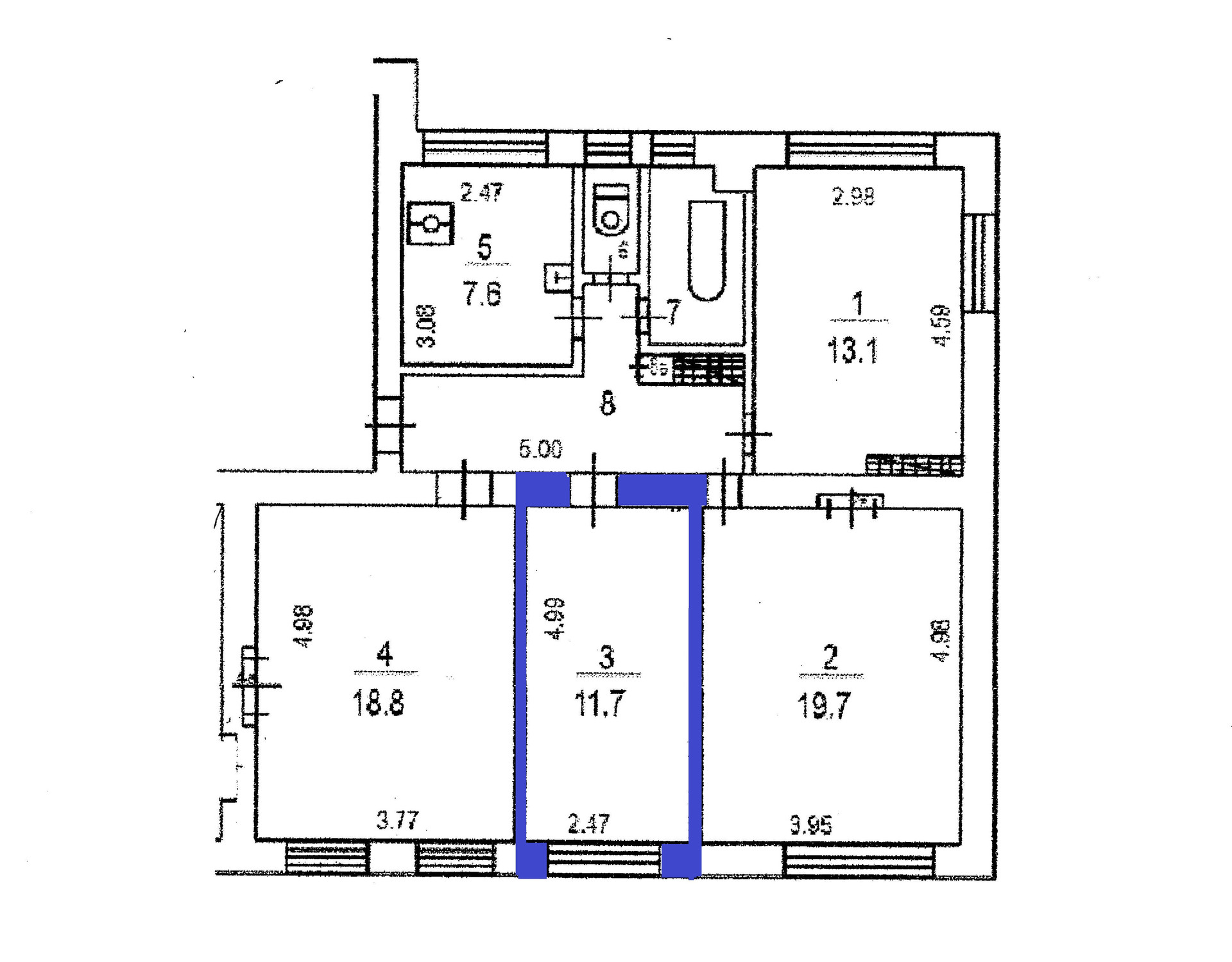 Жилая площадь 63.3 м2