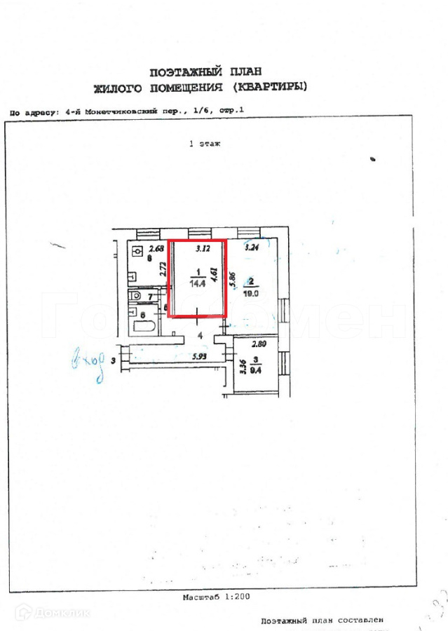 Продается большая отдельная комнатная 14.4м2 в малонаселенной 3х кон. квартире коммунального типа, по адресу: Москва, район Замоскворечье, 4-й Монетчиковский переулок дом 1/6 стр.1. на 1ом (высоком) этаже 4х этажного кирпичного дома, 1958 г/п, построенному по индивидуальному проекту, межэтажные перекрытия - ж/б. Общая пл. квартиры 69.6м2, жилой 42.8м2,  вспомогательная пл 26.8м2. Комнаты раздельные площадью: 19.0/14.4/9,4. Закрытая территория с парковкой. Тихий район центра Москвы, в шаговой доступности большая инфраструктура центра Москвы, во  дворе дома детский сад и школа, в пешей доступности Московский Кремль, и станции метро Павелецкая, Серпуховская, Добрынинская.  Комната в собственности, полная стоимость в ДКП, свободная продажа, оперативный показ и быстрый выход на сделку.
