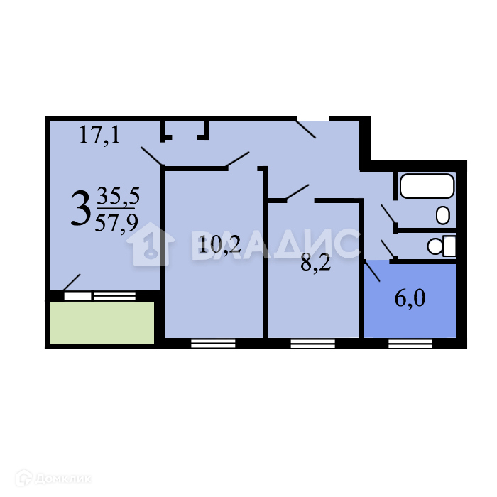 Общая площадь 58.5 м2