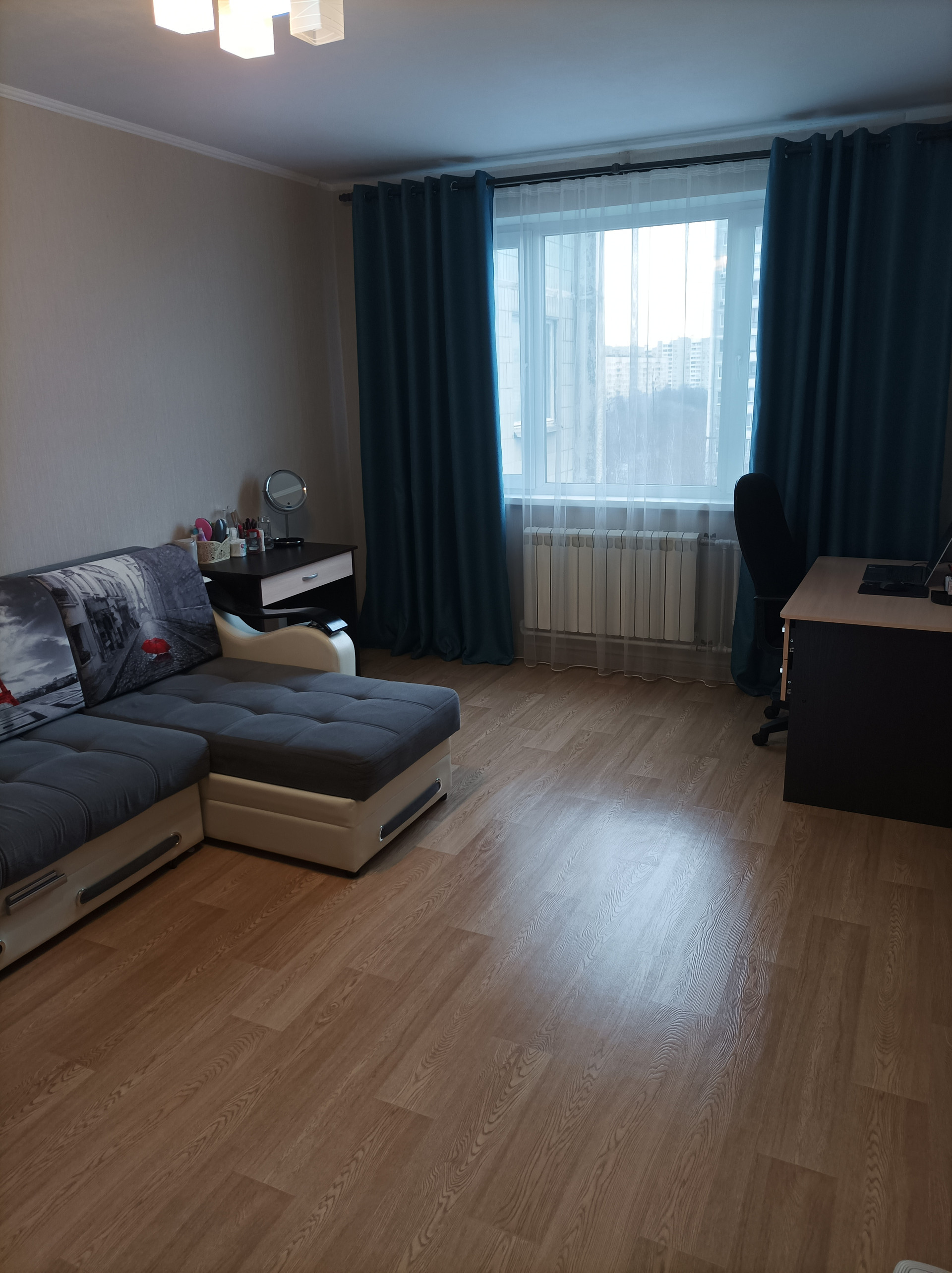 Продается комната в двухкомнатной квартире в чистом зеленом районе. После покупки в 2018 г. (5 лет в собственности) был сделан ремонт (в т.ч. с заменой электропроводки и батареи отопления - зимой тепло). В комнате окна пластиковые. Комната большая (20.1 кв. м), светлая. В общей площади - достаточно просторная кухня (8.2 кв.м.), раздельный санузел. Балкон общий, на кухне (застеклен). Подъезд чистый, оборудован для людей с ограниченными возможностями. Напротив дома - Лианозовский парк. Магазины, школа, детский сад, фитнес-центр - в минутной шаговой доступности. Соседи - семейная пара с ребенком (ребенок "взрослый", ходит в школу). Тихие, культурные люди. До метро не более 15 минут неспешным шагом. Важно: вся мебель (диван, большой шкаф-купе, письменный стол, стол для косметики,  мебель на кухне) и бытовая техника (холодильник, стиральная машина, электроплита) продаются вместе с комнатой. Все это покупалось после 2018 г.