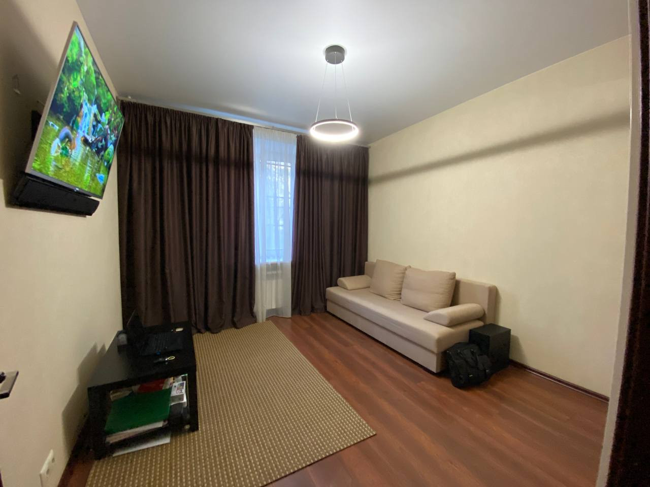 В комнате сделан свежий евро-ремонт, на окне - стеклопакет REHAU, батарея заменена, медная проводка, на полу - ламинат, натяжной потолок, свежие обои, встроенная система хранения.