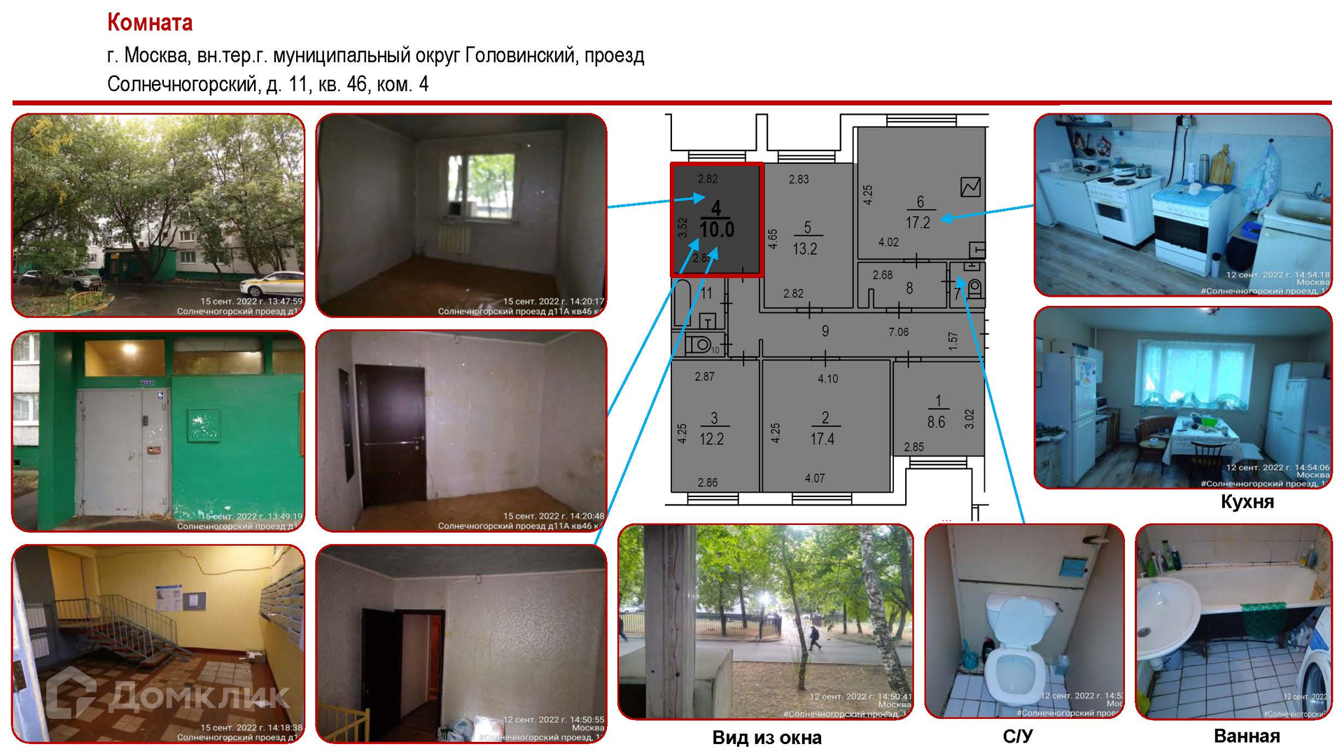 Комната, 10 м2, на продажу в Москве, Солнечногорский проезд, 11