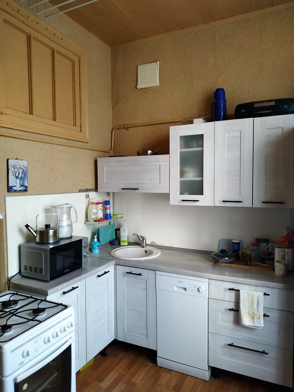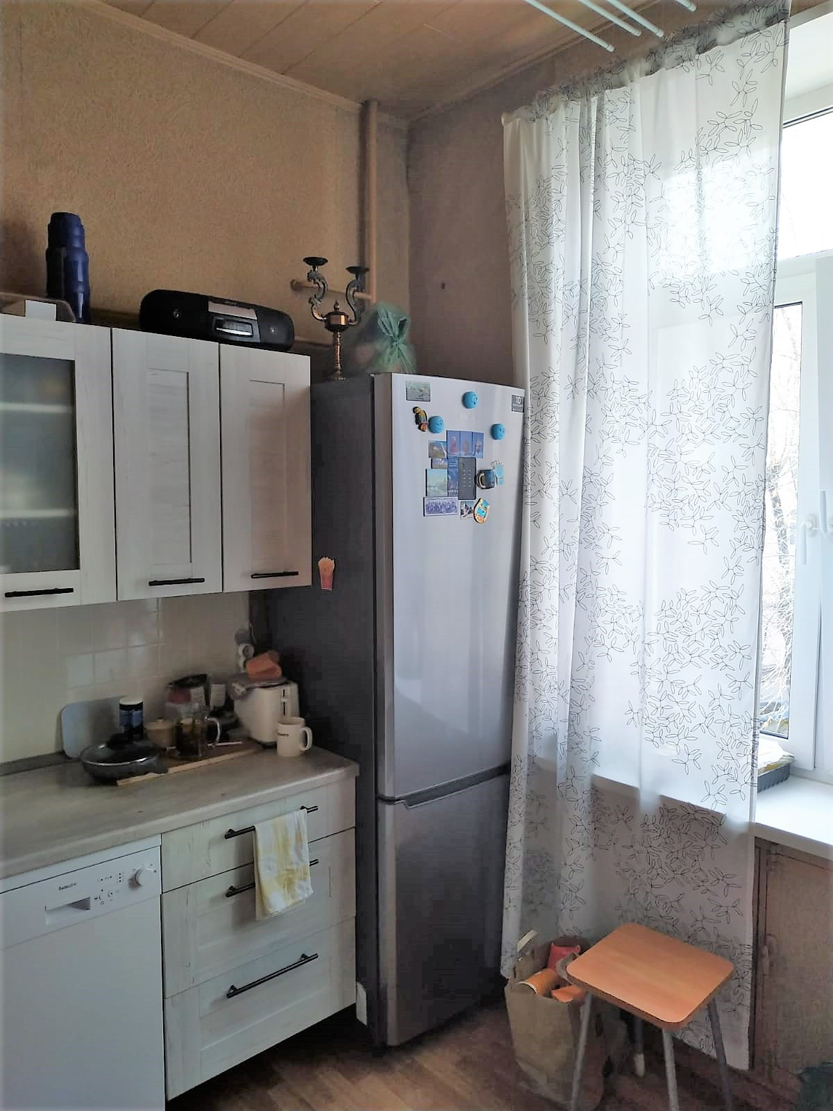 Потолки 3,2. Пластиковые окна. Большой двор с детской площадкой. Парковка стихийная (места есть). В квартире еще 2 собственника, проживает 3 человека.