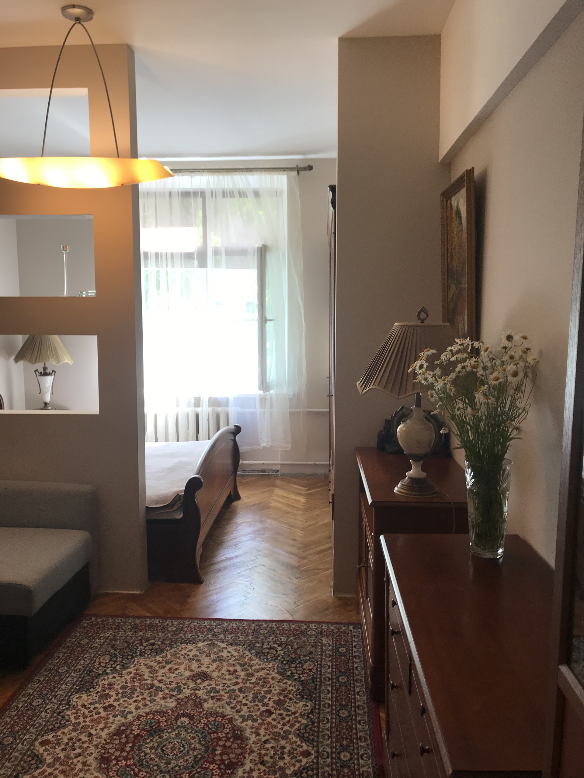Малонаселенная квартира в тихом центре. Год назад сделан капитальный ремонт. Квартира на 1 этаже, но высокий. Ещё комнат 2. Одна сдаётся, другая закрыта( муниципальная), хозяева не живут. Территория зелёная. Имеется шлагбаум. Продажа возможна с мебелью( Румыния, массив ольхи). Агентов прошу не предлагать свои услуги. Торг уместен.