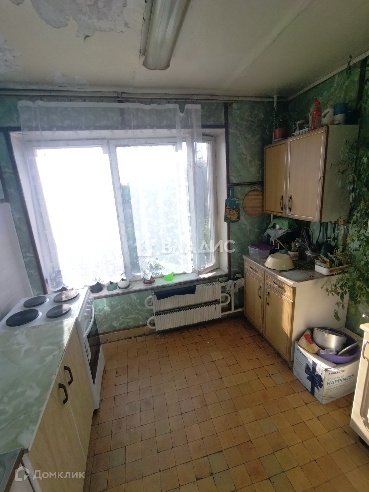 На полу линолеум. Окно деревянные рамы.